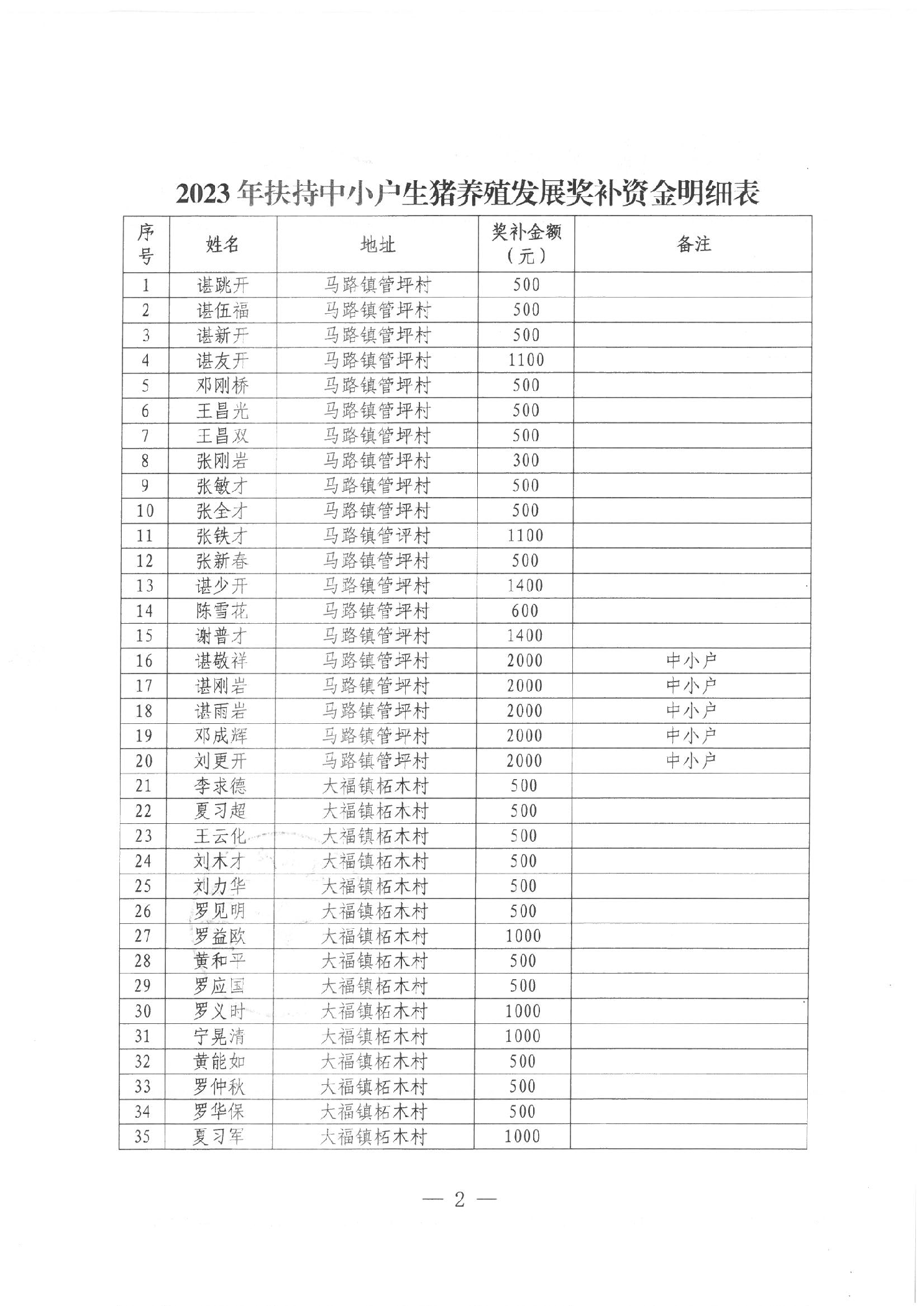 2023年安化县扶持中小户生猪养殖发展奖补资金公示