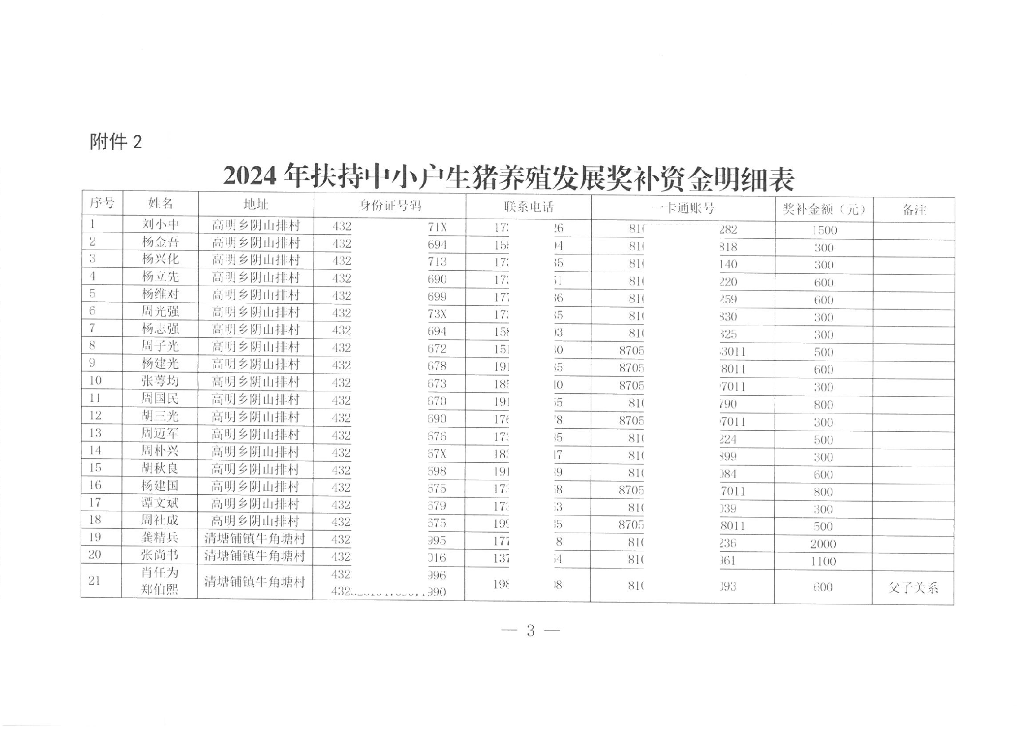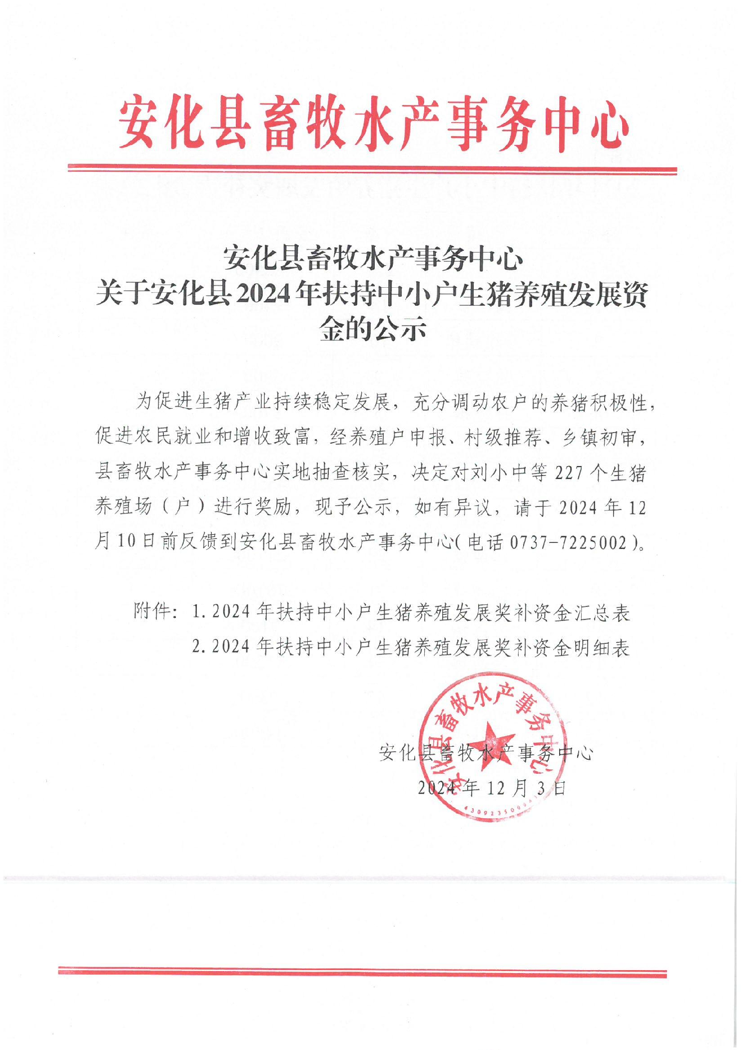 关于安化县2024年扶持中小户生猪养殖发展资金的公示