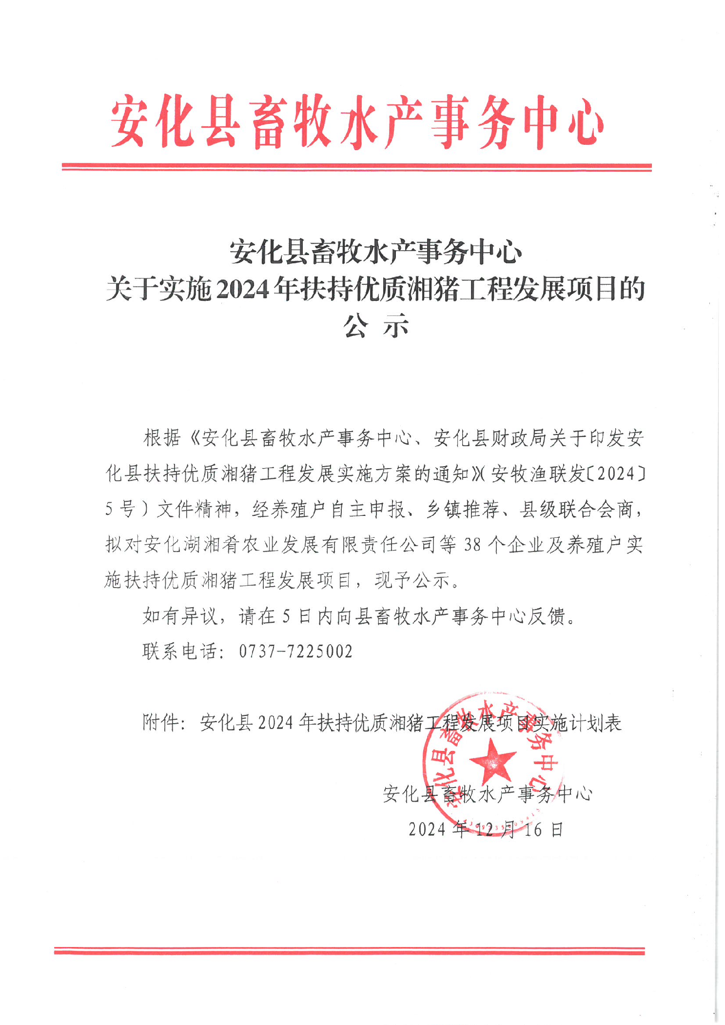 关于实施2024年扶持优质湘猪工程发展项目的公示