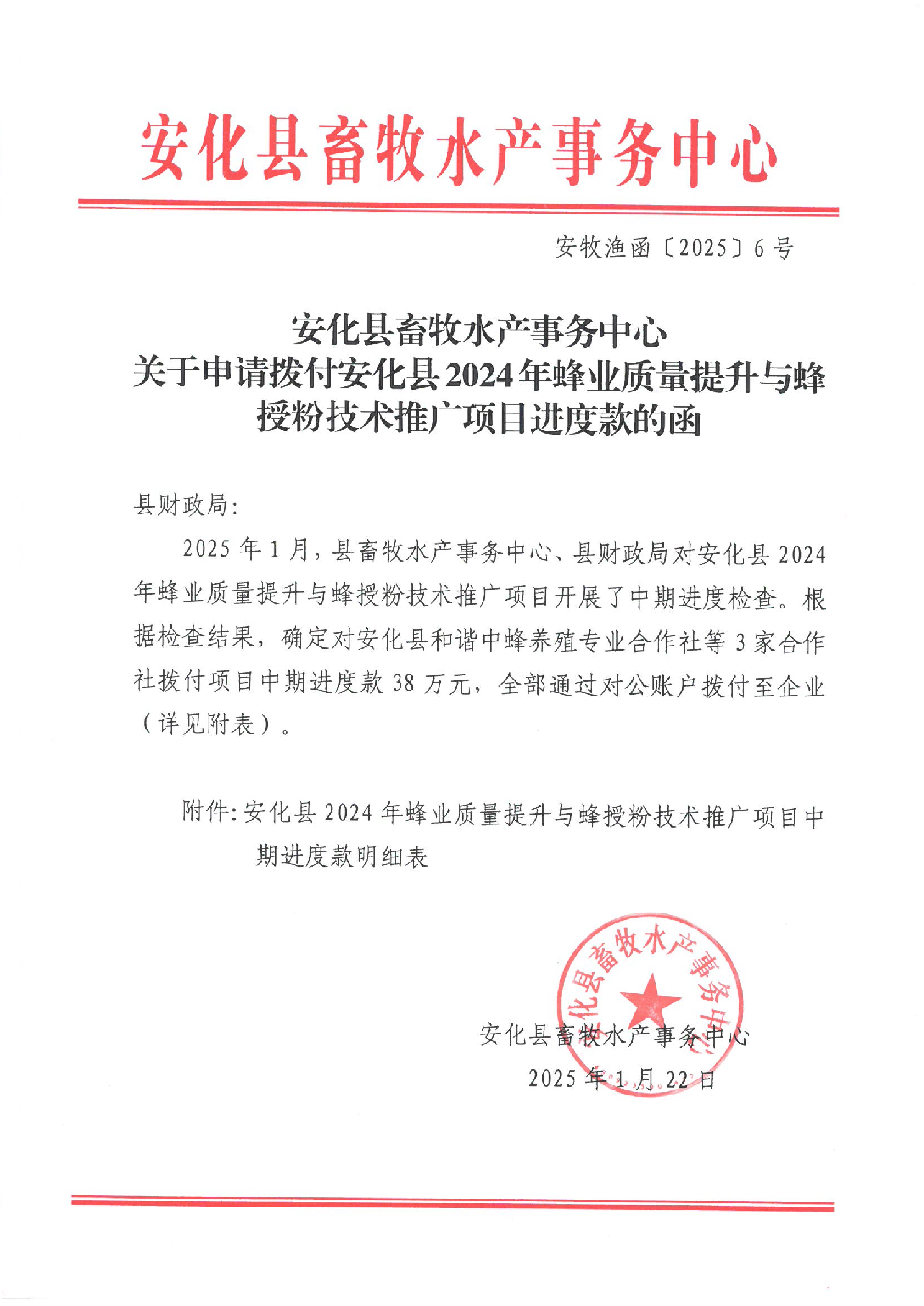 安化县2024年蜂业质量提升与蜂授粉技术推广项目进度款