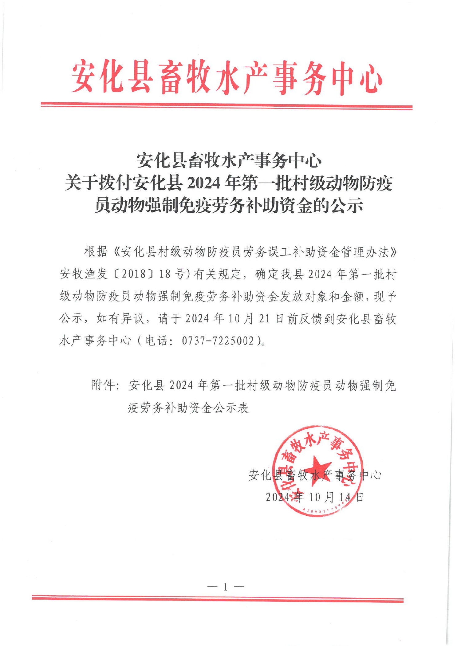 关于拨付安化县2024年第一批村级动物防疫员动物强制免疫劳务补助资金的公示