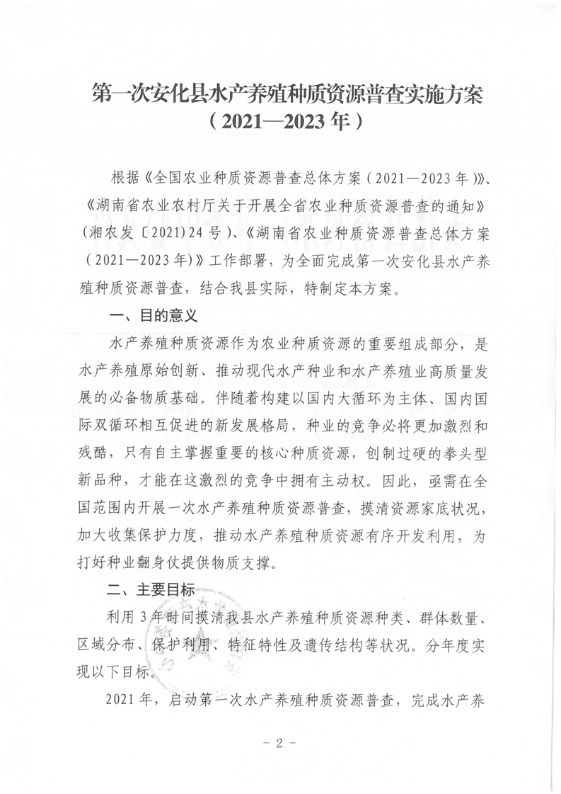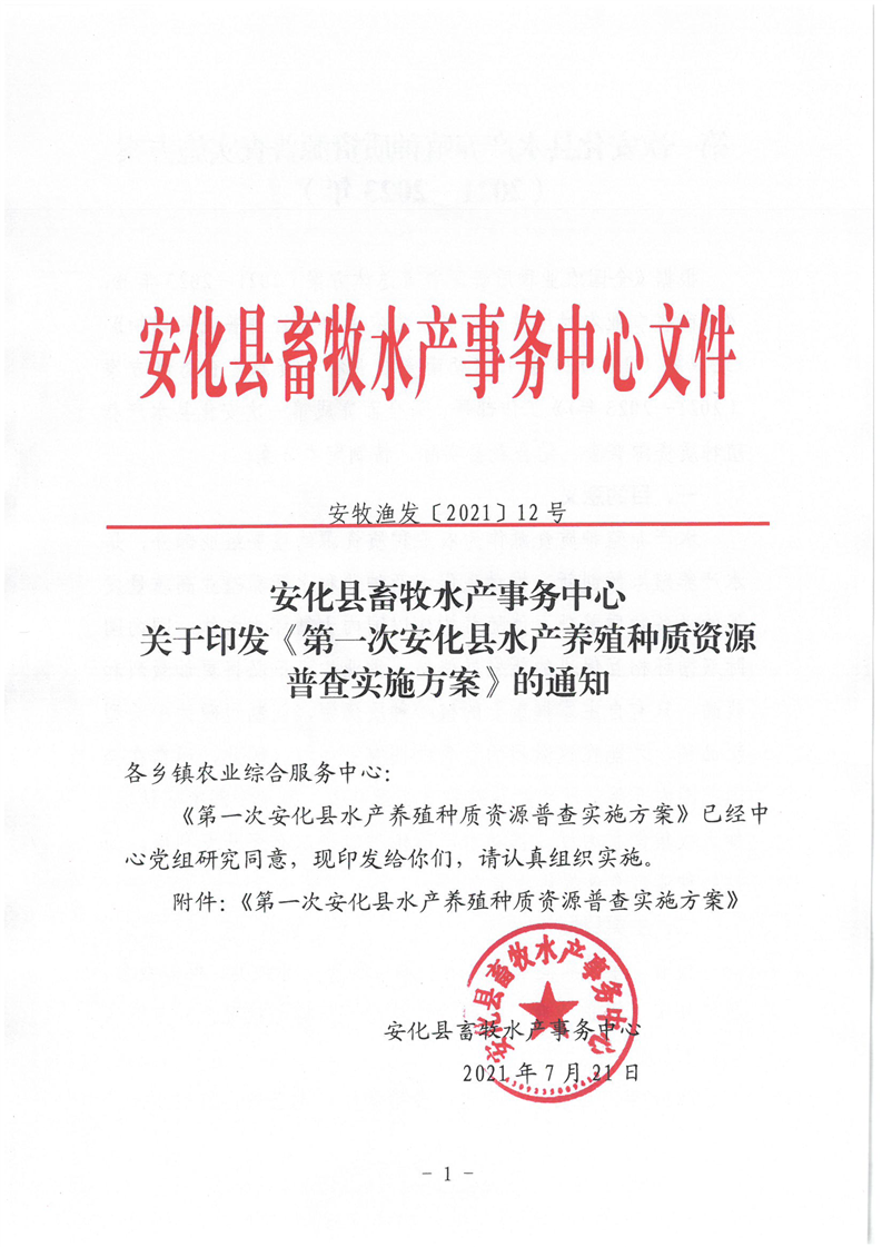 安化县畜牧水产事务中心关于印发《第一次安化县水产养殖种质资源普查实施方案》的通知