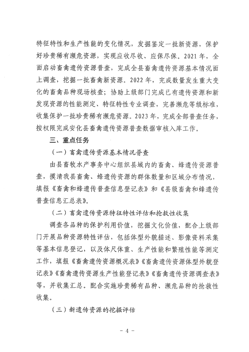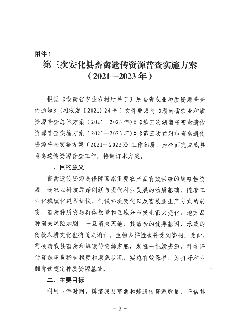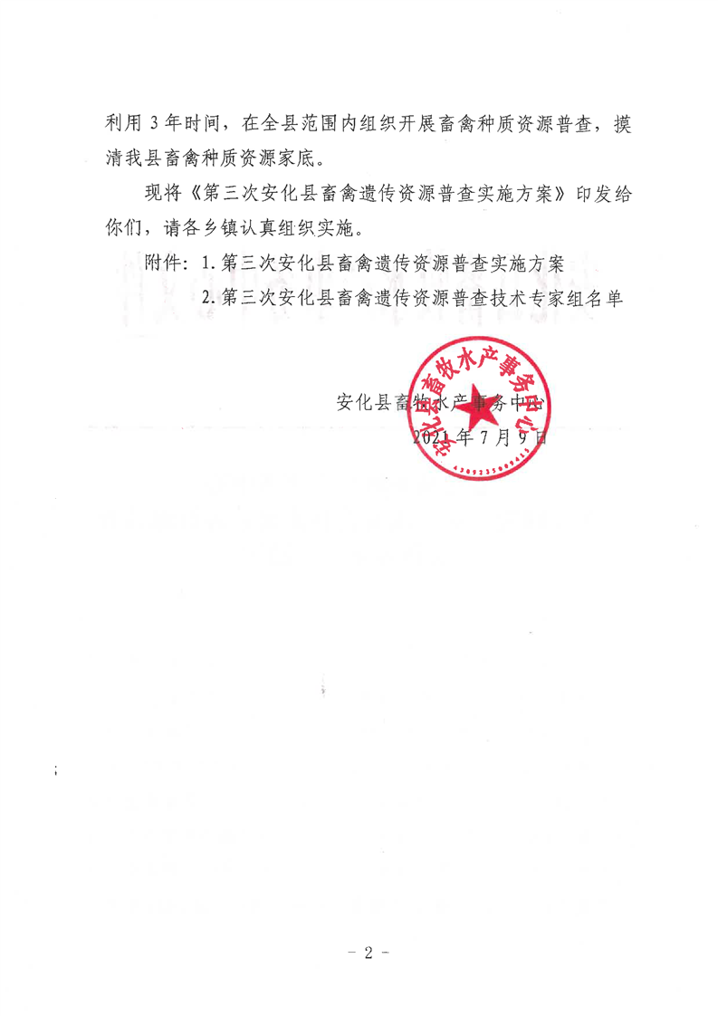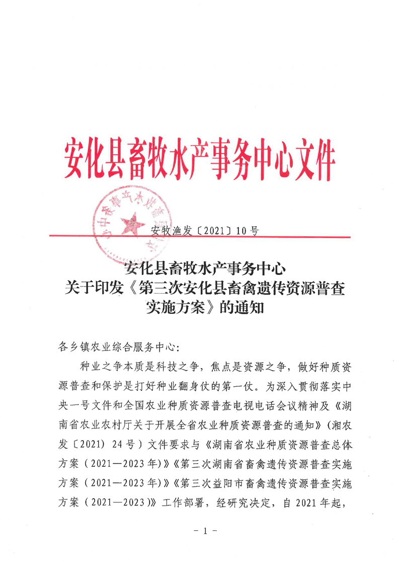 安化县畜牧水产事务中心关于印发《第三次安化县畜禽遗传资源普查实施方案》的通知