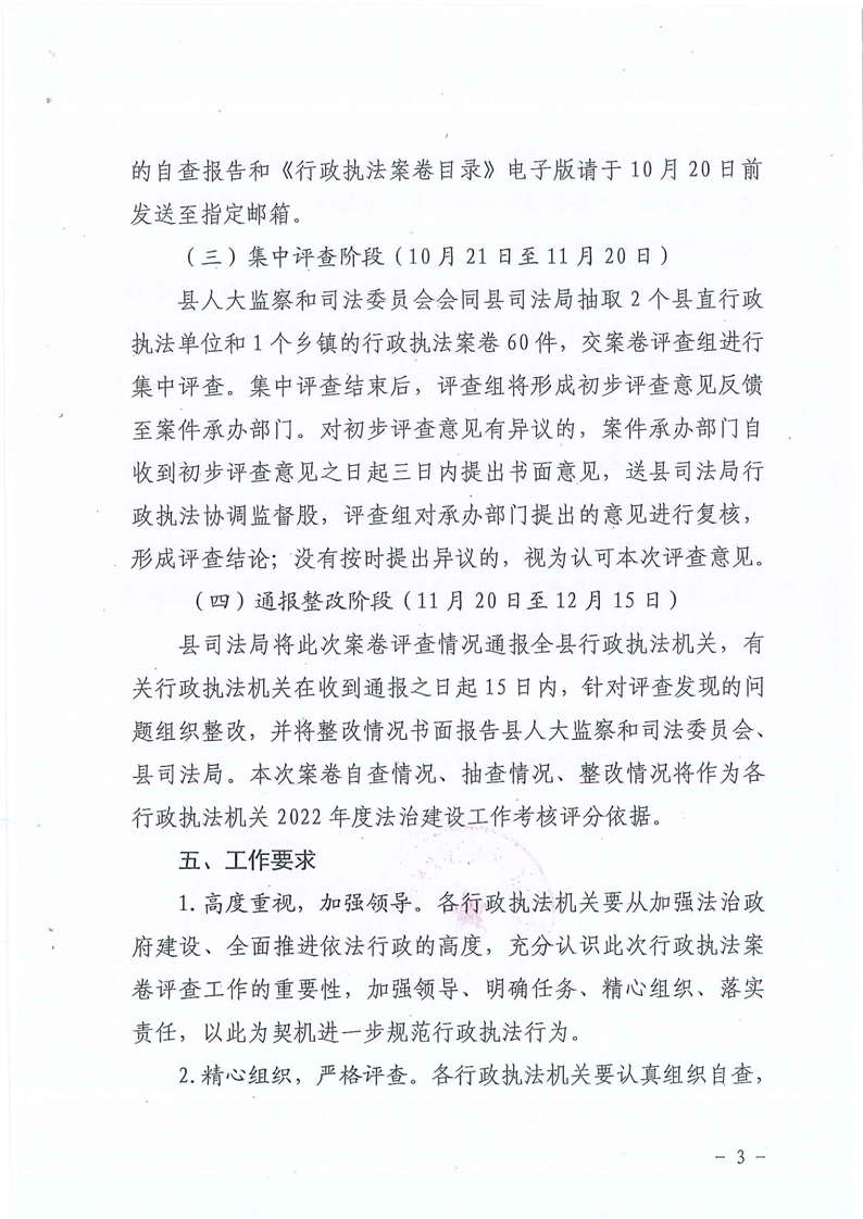 关于开展2022年度全县行政执法案卷评查工作的通知