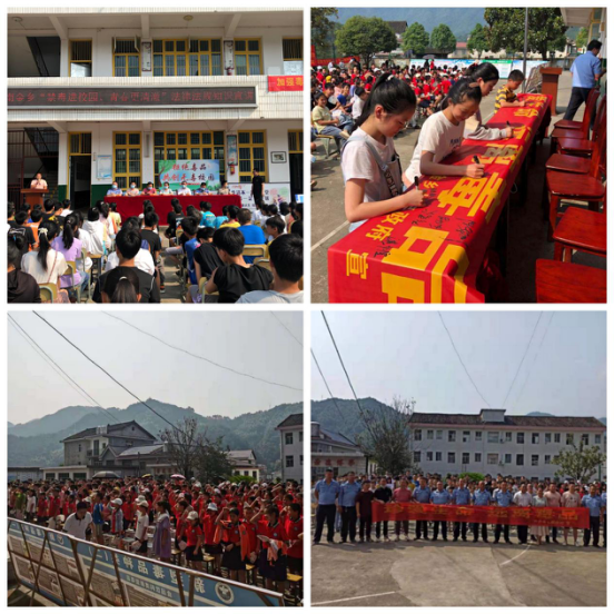 为深入贯彻落实县禁毒委和县司法局关于禁毒工作的有关文件要求,开展好“6·26”禁毒月系列禁毒宣传工作,增强青少年的法律意识,进一步普及禁毒知识,创建健康无毒的校园环境。6月23日上午,南金司法所联合派出所、市监所、乡应急办、乡社会事务办在南金乡政法委员陈勇刚的带领下,在南金乡中学开展了“禁毒宣传进校园”法治宣传教育活动。