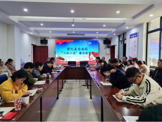11月11日上午,安化县司法局组织召开“三抓三进”廉洁教育会,机关全体干职工、乡镇司法所干职工及律师事务所代表参加。
