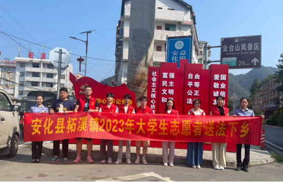 为加强法治建设,助力乡村振兴,8月28日,安化县司法局柘溪司法所组织大学生志愿者在柘溪镇开展“大学生送法下乡,助力乡村振兴”普法宣传活动。