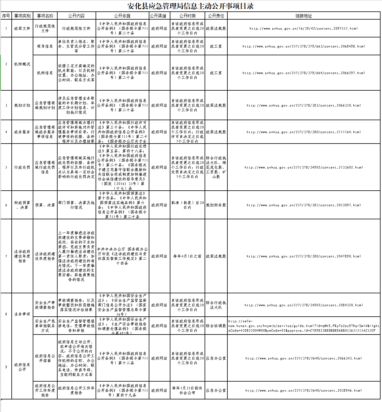 安化县应急管理局信息主动公开事项目录