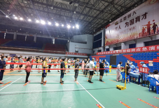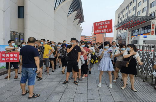 8月3日,安化县开展新冠病毒核酸采样检测应急演练,县商务局组织400名农贸市场从业人员参加演练并进行了核酸采样。