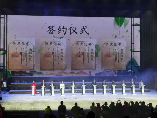 10月22日,第五届湖南﹒安化黑茶文化节在安化天下黑茶大剧院开幕。在开幕式上举行了盛大的招商引资项目集中签约仪式。中国水利水电第八工程局有限公司、安徽海螺水泥股份有限公司等14家公司的负责人分别上台签约。本次共集中签约14个招商项目,主要涉及乡村振兴茶旅产业提升、现代农业全产业链、平台建设与品牌运营、品牌教育、新材料、新能源等领域,总投资额102.408亿元。建成后将推动安化县产业转型,形成产业集群,将生态资源优势转化成经济发展优势,为巩固拓展脱贫攻坚成果,大力推进乡村振兴提供强有力的支撑。为建设“开放、创新、秀美、富饶、幸福”新安化,奋力谱写社会主义现代化新安化“山乡巨变”新篇章将发挥重要作用。