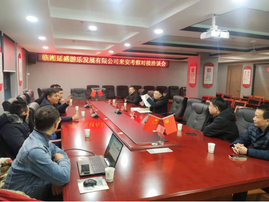 1月6日,临湘延盛游乐发展有限公司总经理林琼斌一行来我县考察对接市民游乐项目。县投促中心主任朱向阳组织县城凤凰新区指挥部、县梅山城投公司、东坪镇、县投促中心等单位相关负责人在商务局会议室召开了项目对接洽谈会。