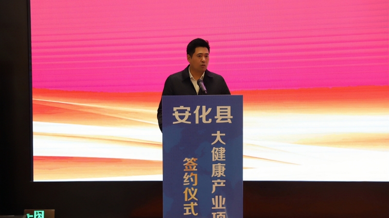 11月17日上午,安化县大健康产业项目招商签约仪式在安化温德姆大酒店举行。县委副书记、县长潘文剑出席签约仪式并致辞。由副县长瞿东江代表安化县人民政府与投资方进行签约。中华民族团结进步协会副会长兼秘书长刀波,益阳市政协农业农村委主任雷越毅、北京同心共铸公益基金会创始人、步长制药集团高级副总裁、北京分公司法人代表郑红兵等出席并见证签约。