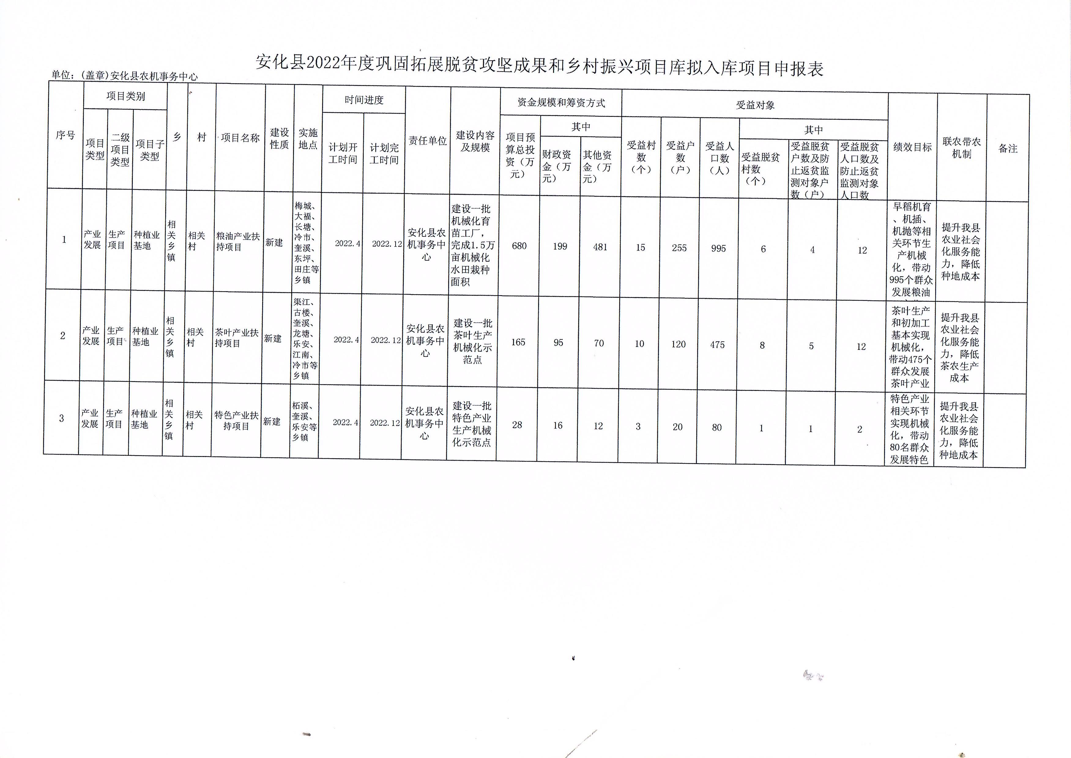 安化县2022年度巩固拓展脱贫攻坚成果和乡村振兴项目库拟入库项目申报表
