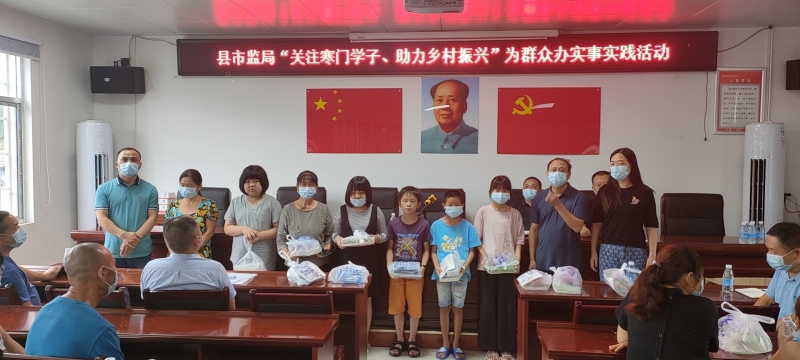 8月24日,县市监局党组书记,局长刘卫方带队到该局乡村振兴点羊角塘镇董木溪村开展“关注寒门学子,助力乡村振兴”为群众办实事活动。活动中,该局为董木溪村党员赠送了10套党史学习教育书籍,为该村80余名小学生每人赠送一套学习用品和读本,并为两名贫困家庭大学生送上了助学金。