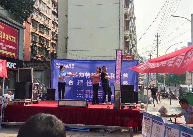 “安全食品人人夸,食品安全靠大家。食品安全人人讲,齐心协力创辉煌,齐心协力创辉煌!”9月15日上午,这段朗朗上口的快板表演正在安化县东坪镇步步高超市前坪广场上上演,同时还有改编的食盐版花鼓戏等,现场气氛热闹非凡。
