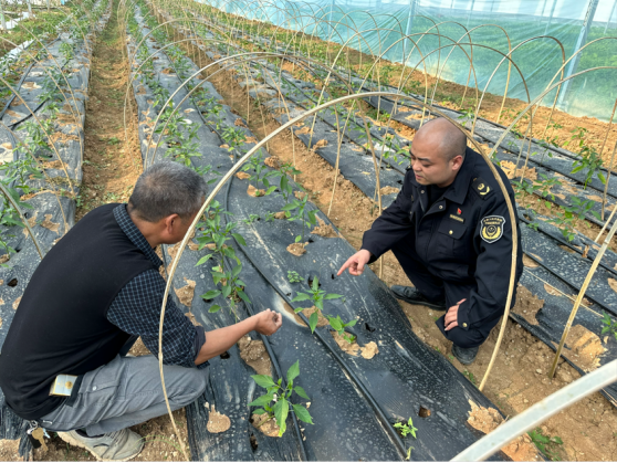 在种植大棚内,工作人员仔细了解了蔬菜的生长情况,大棚内借助科技手段与先进设备精准控制棚内光照、室温、湿度等情况,检查了农药化肥的使用记录,查看是否存在违规用药的情况,确保符合安全标准。同时,与农场负责人及相关工作人员积极开展安全知识宣传,强调规范种植的重要性。