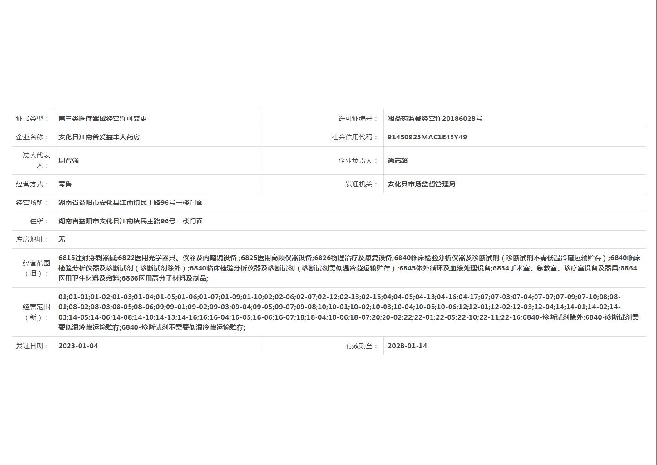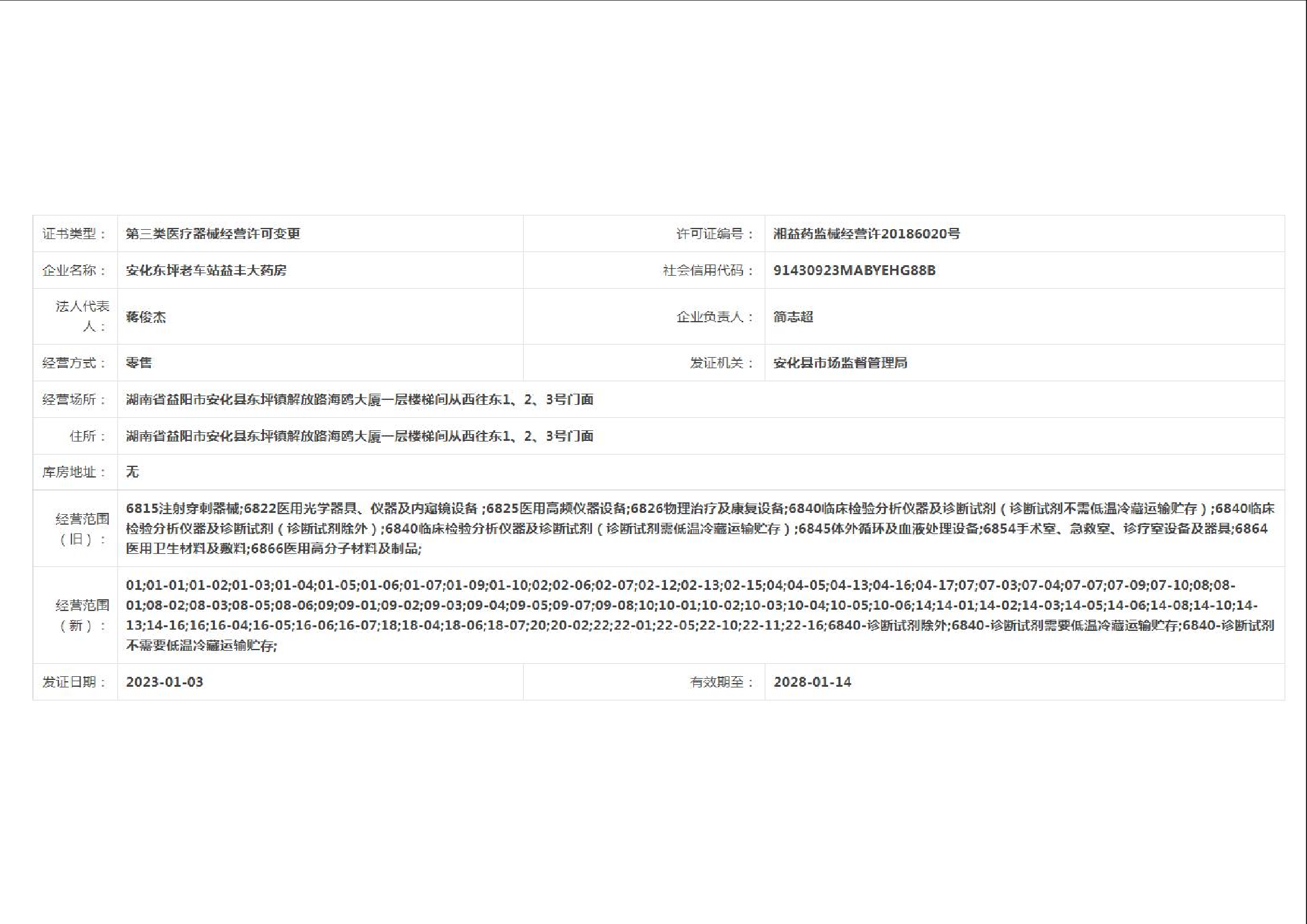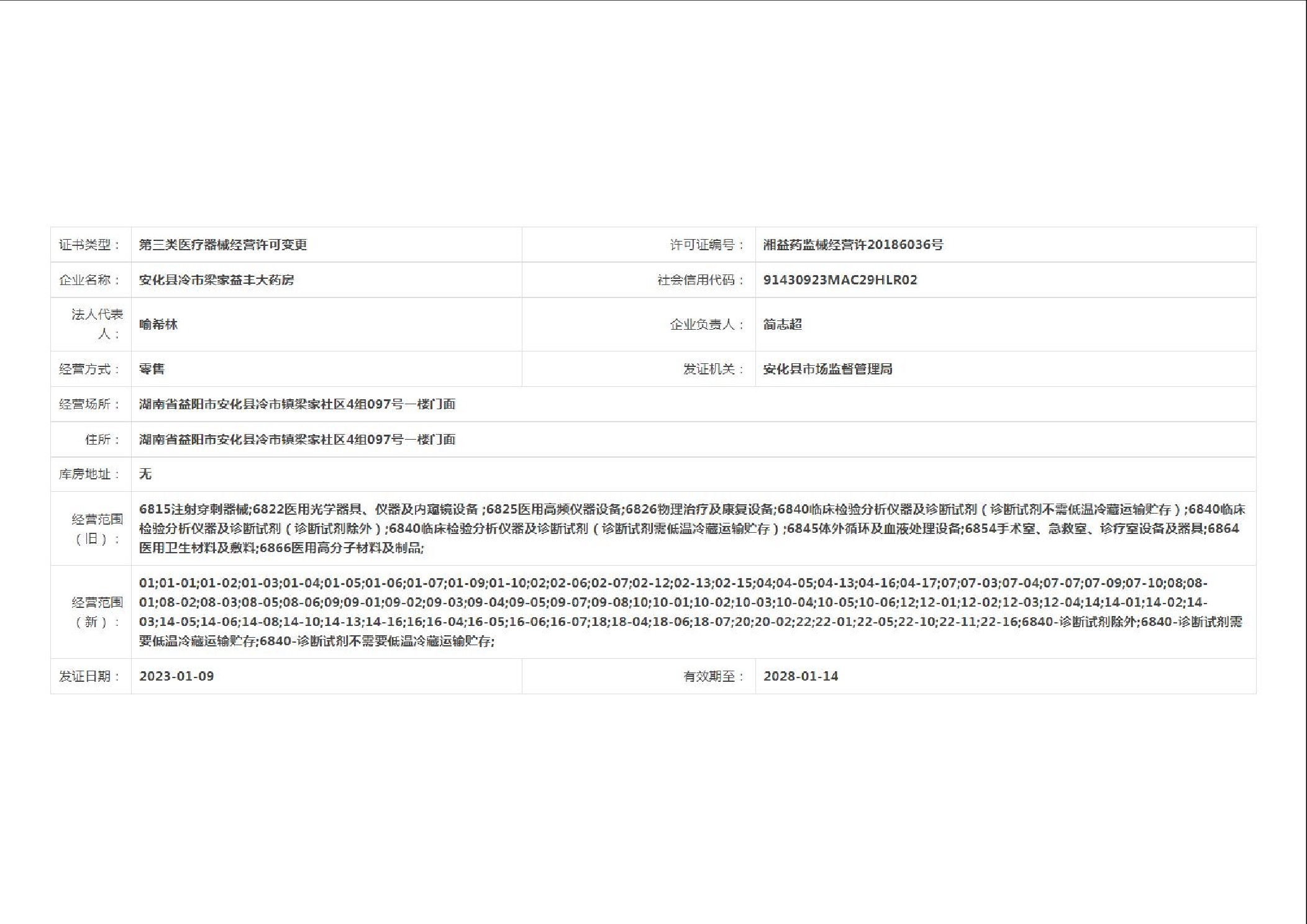 医疗器械经营许可(备案)信息公示 (2023年第01号)