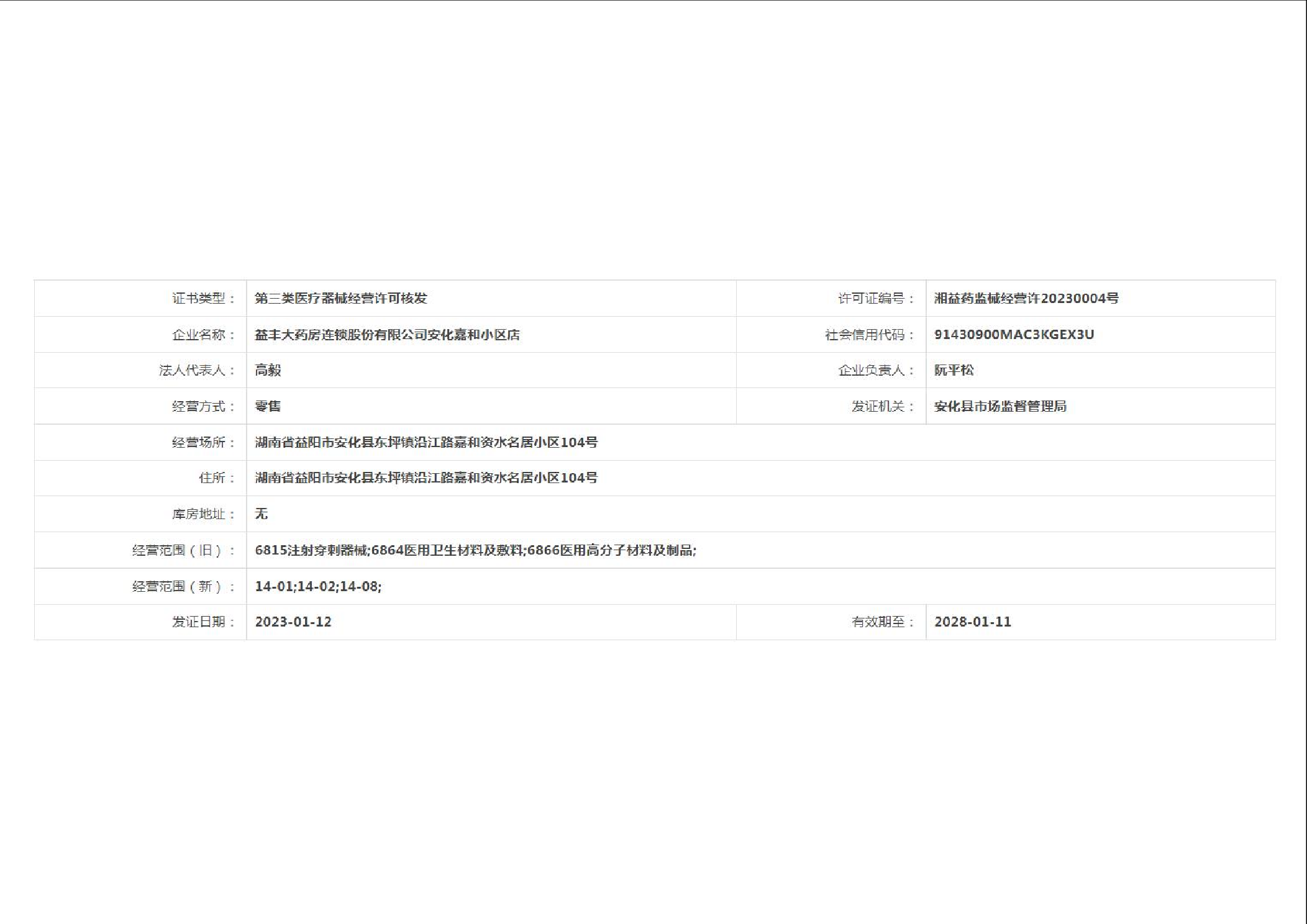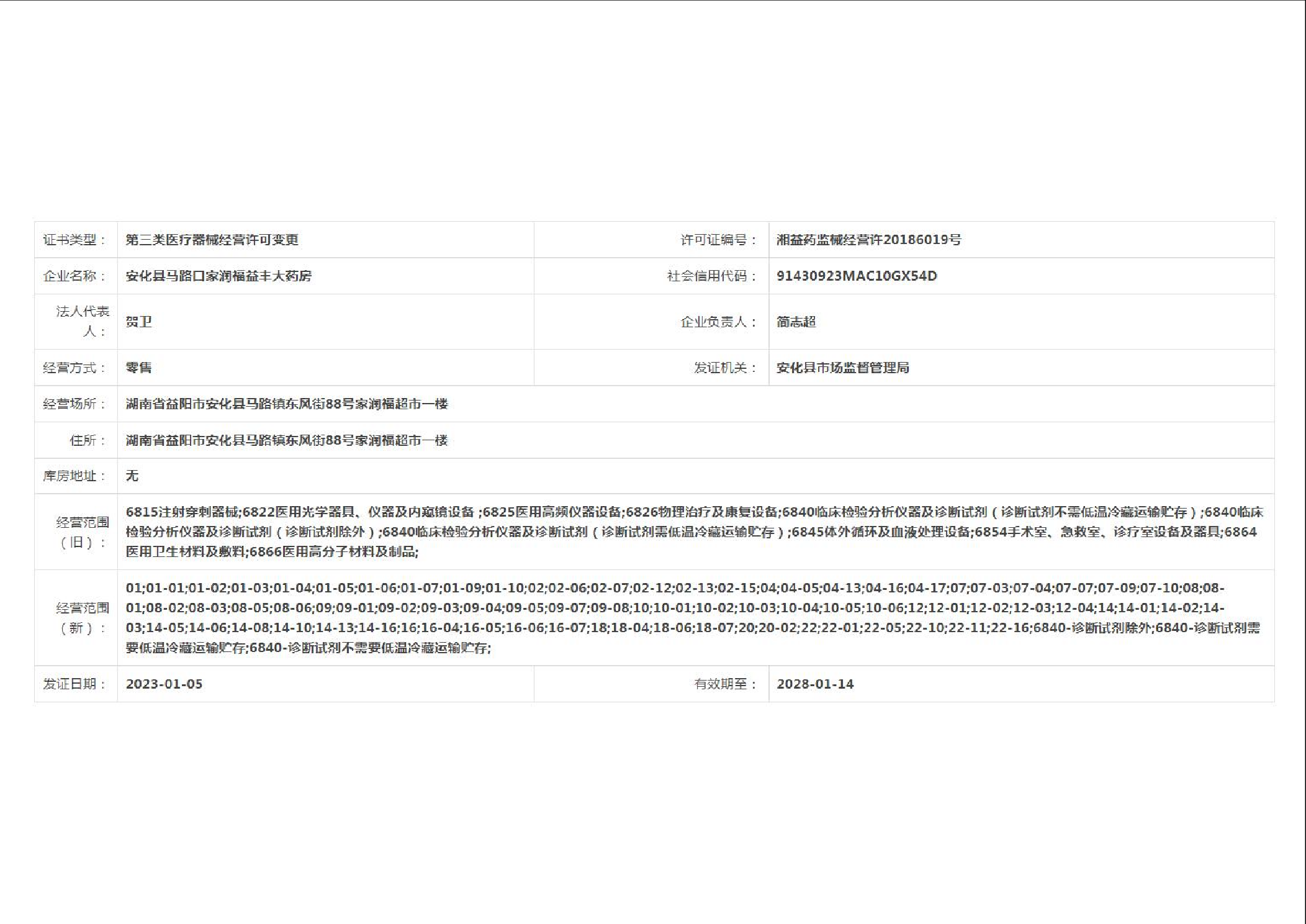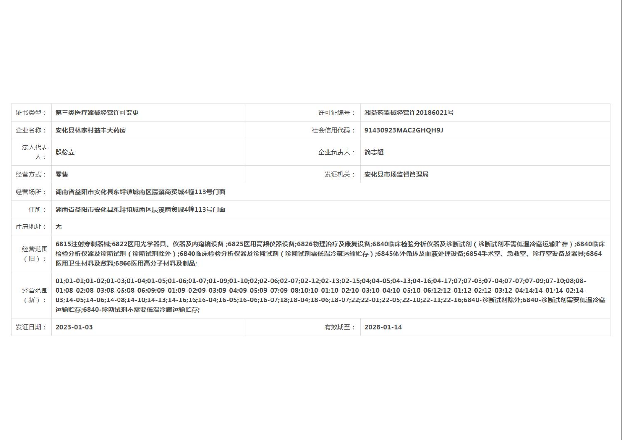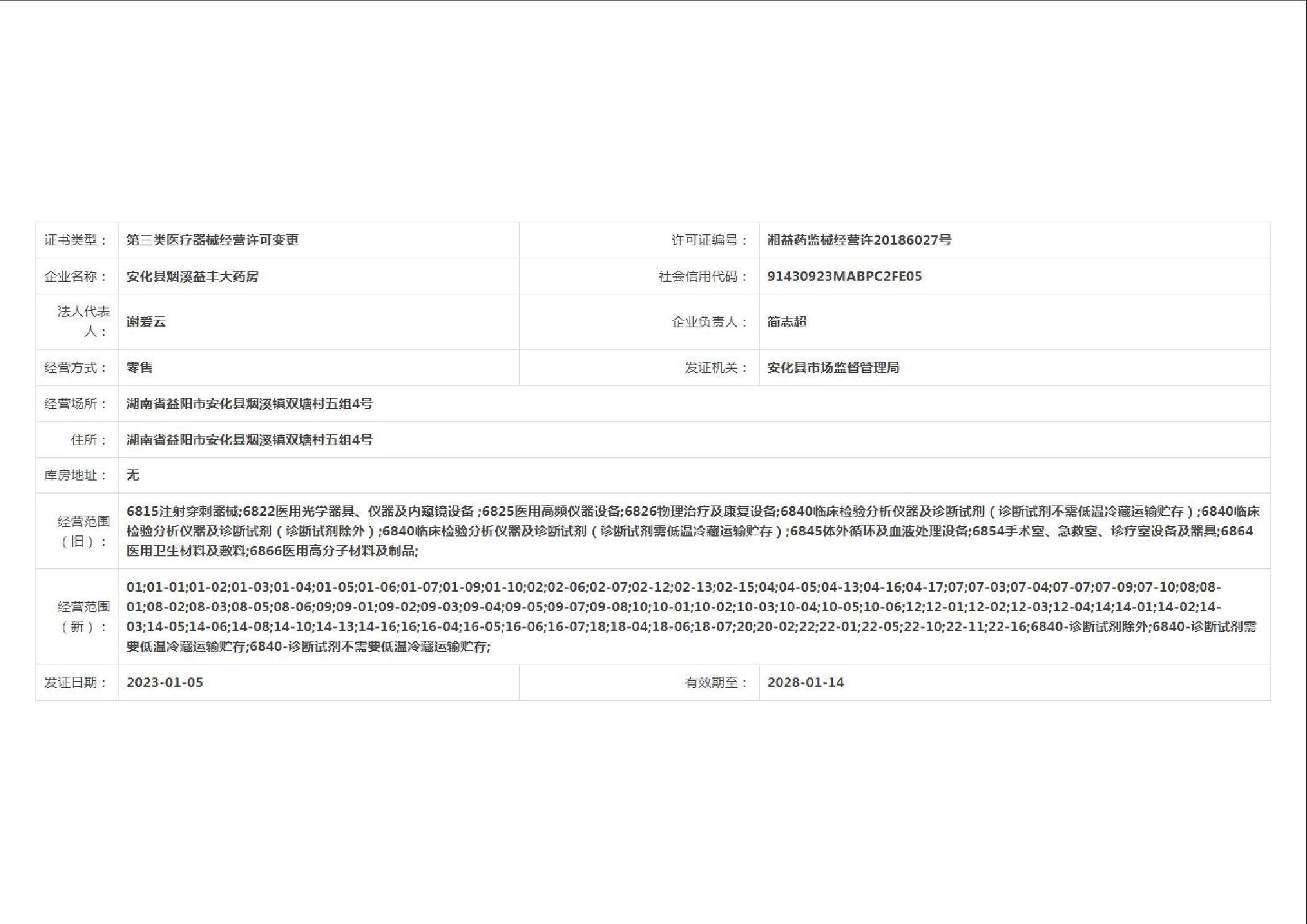 医疗器械经营许可(备案)信息公示 (2023年第01号)