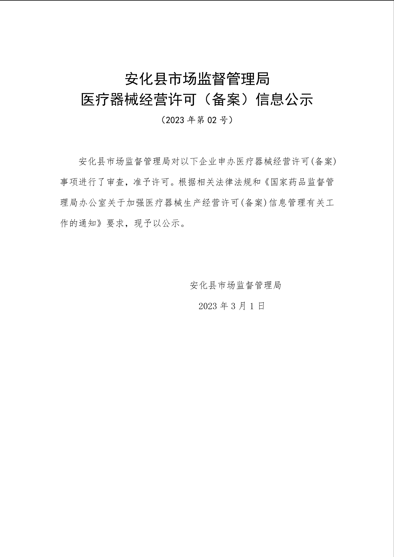 医疗器械经营许可(备案)信息公示 (2023年第02号)