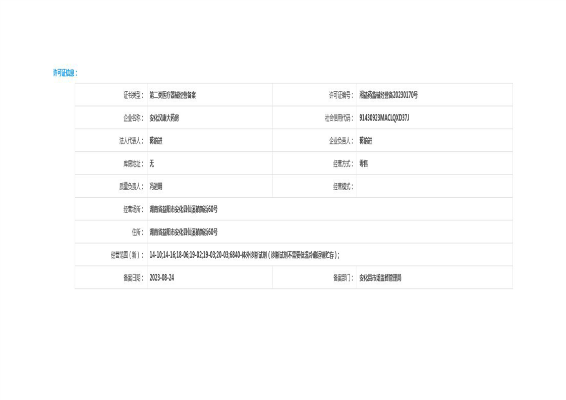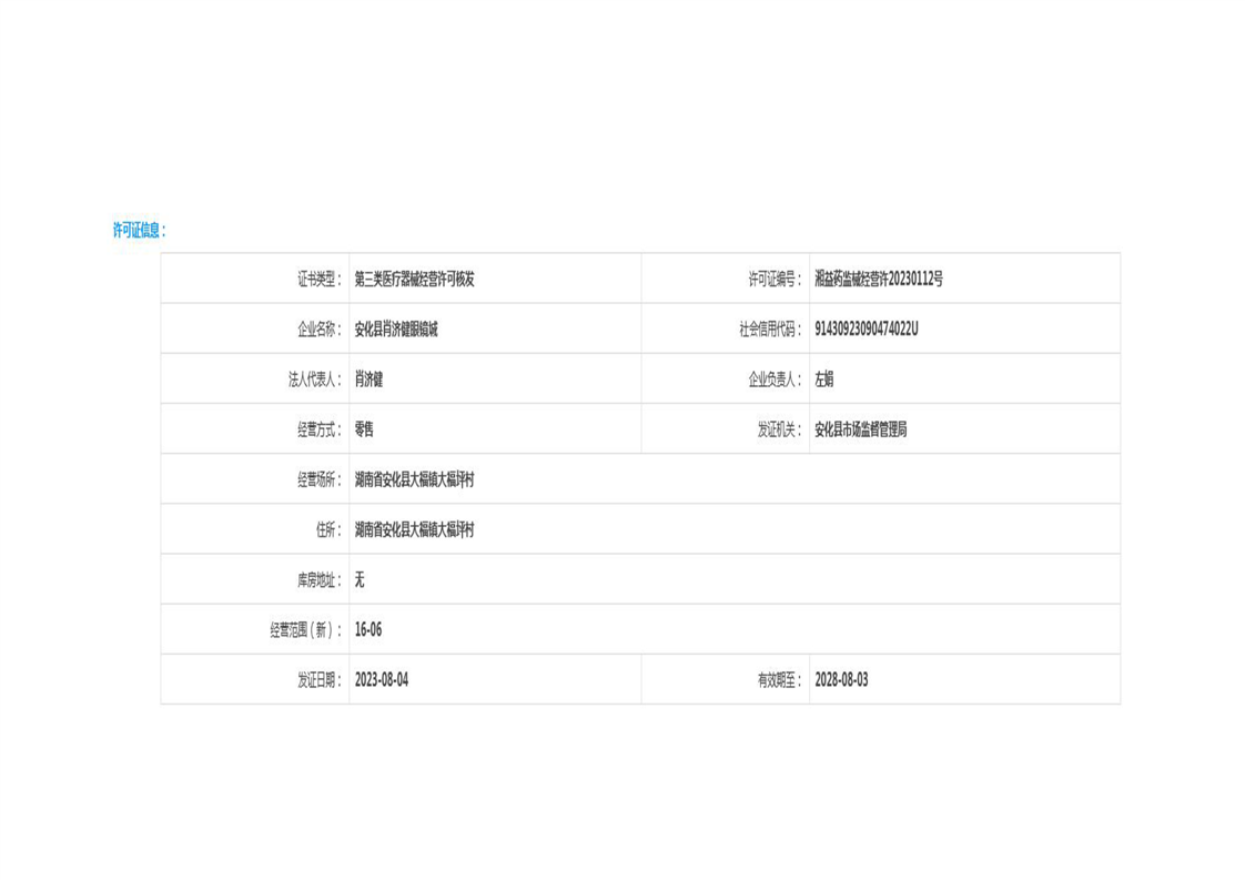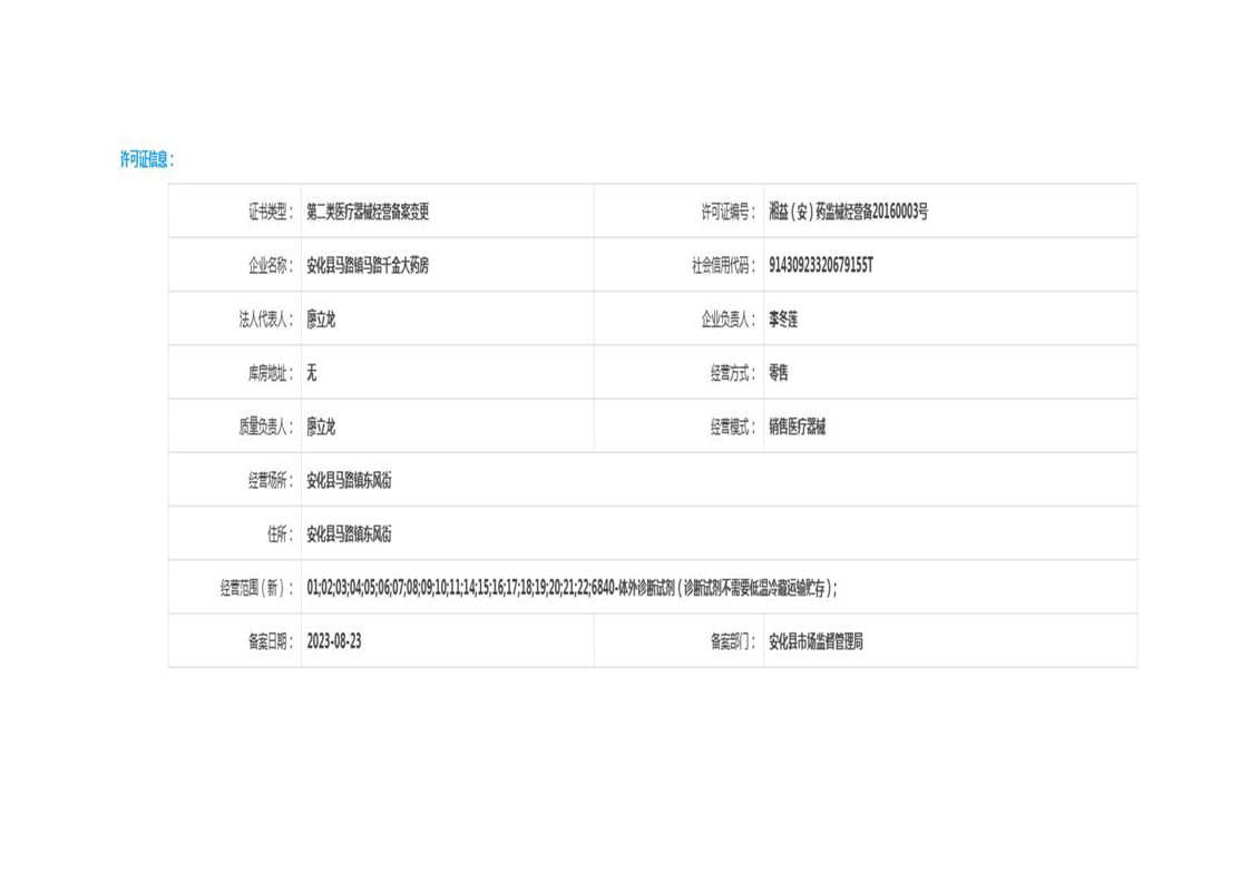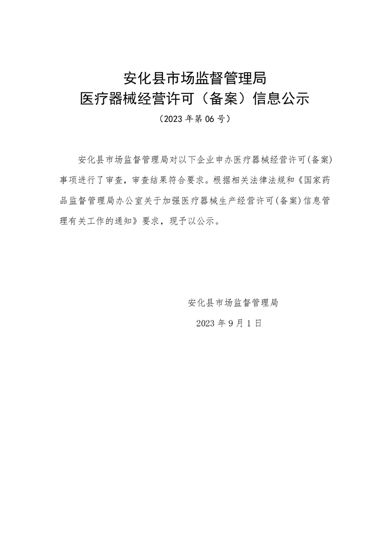 医疗器械经营许可(备案)信息公示 (2023年第06号)