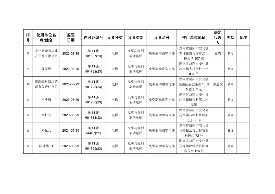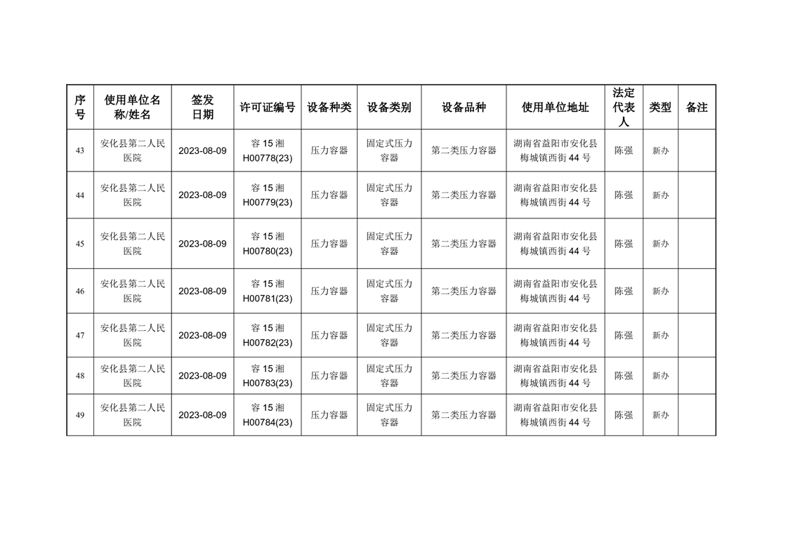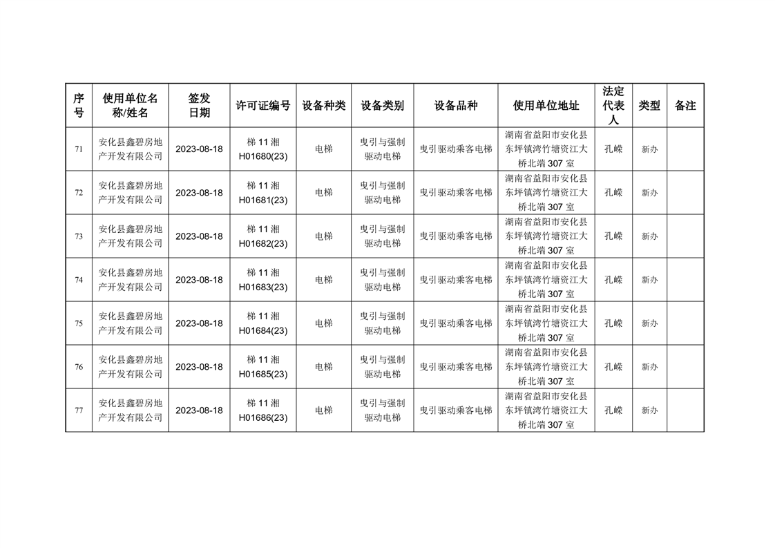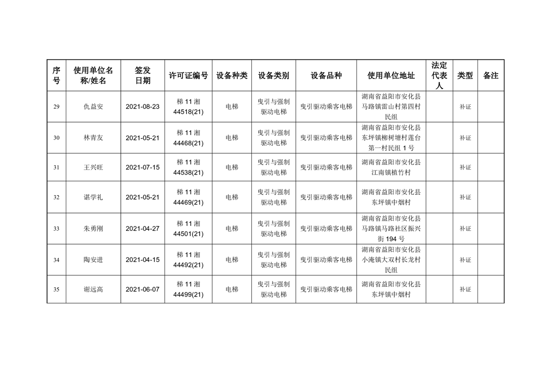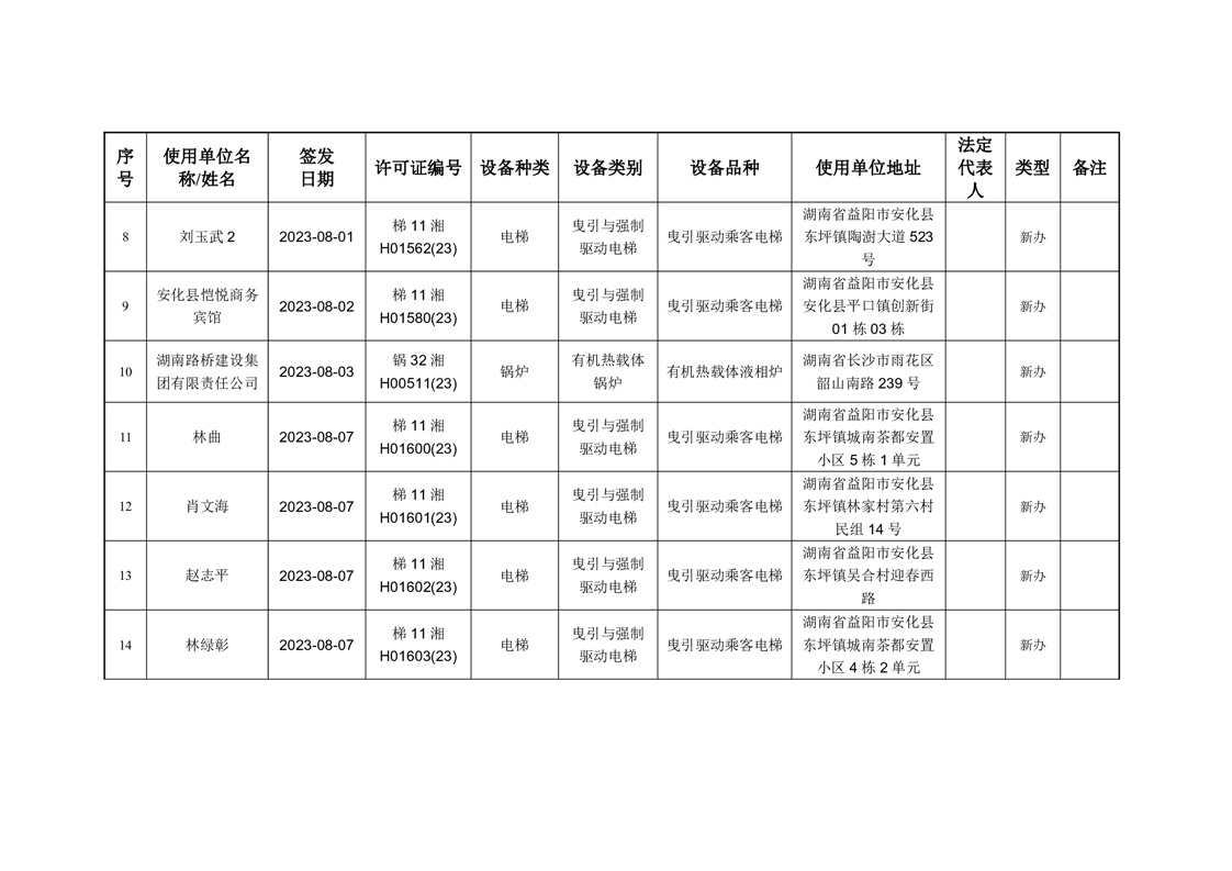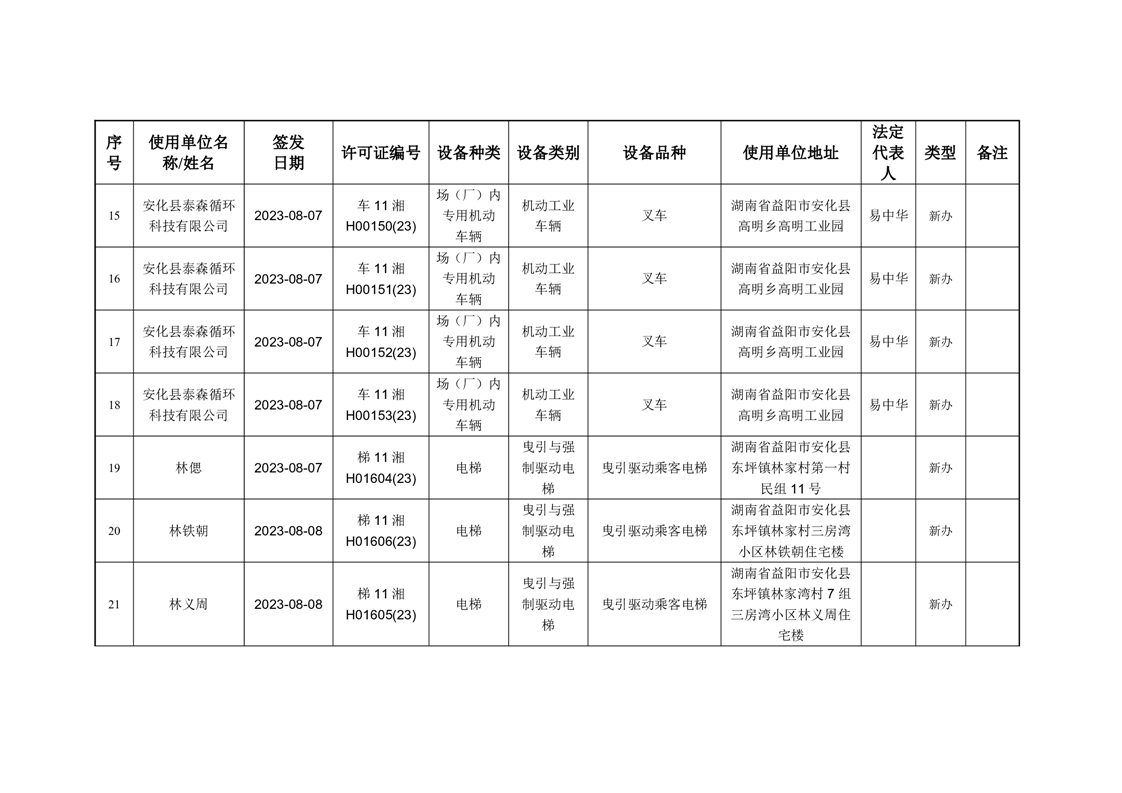 安化县市场监督管理局 2023年第3期《特种设备使用登记证》核发/变更公告