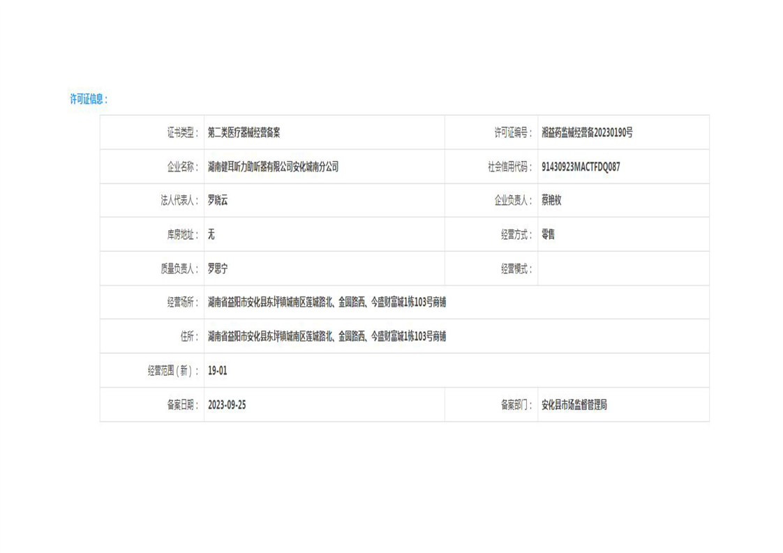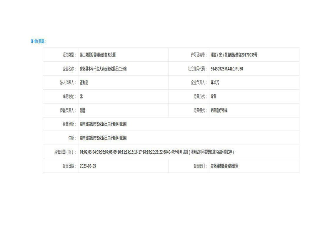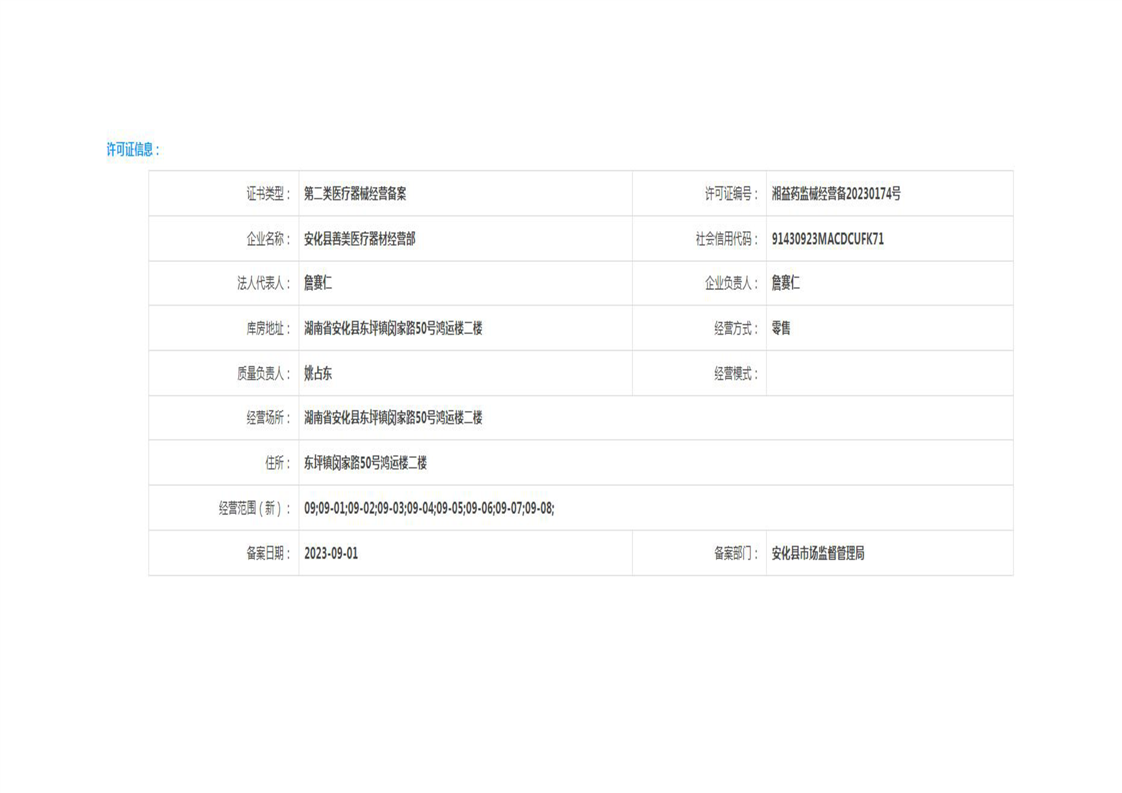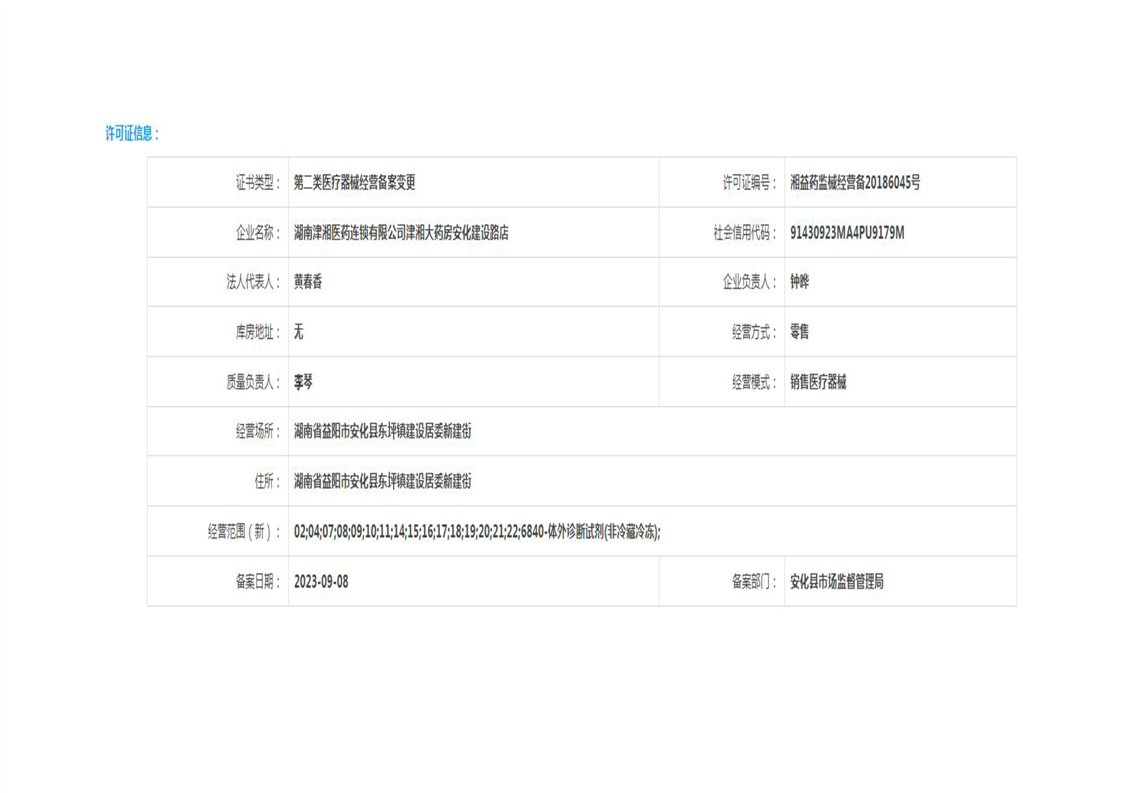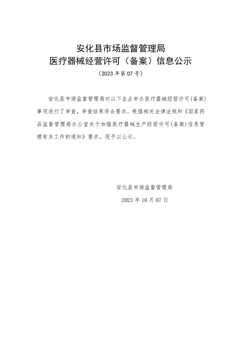 医疗器械经营许可(备案)信息公示 (2023年第07号)
