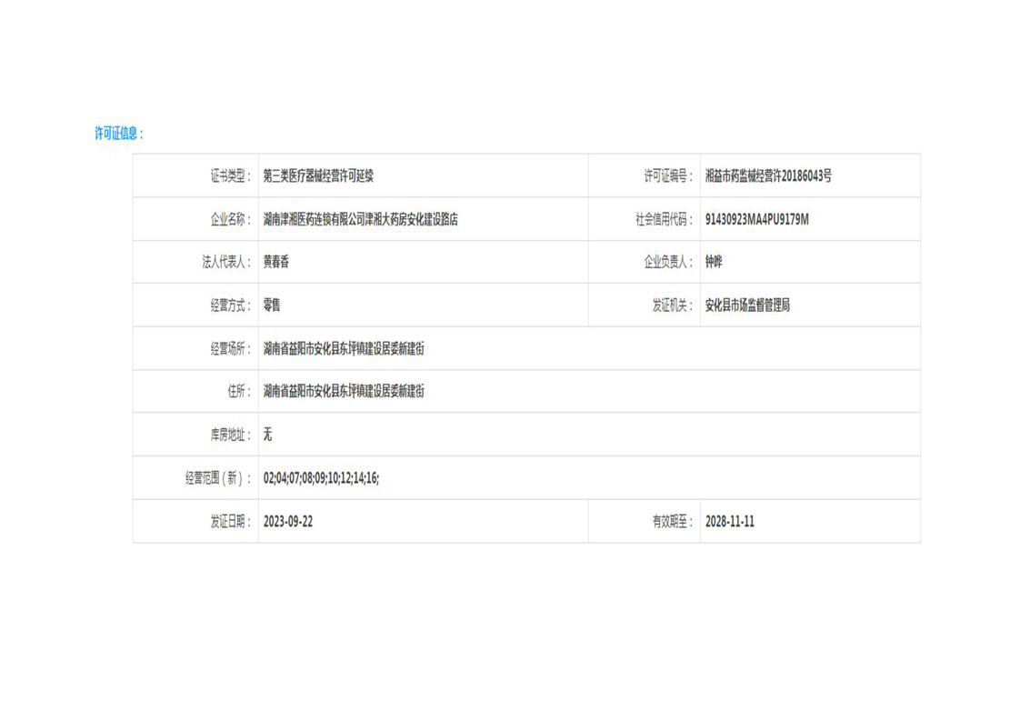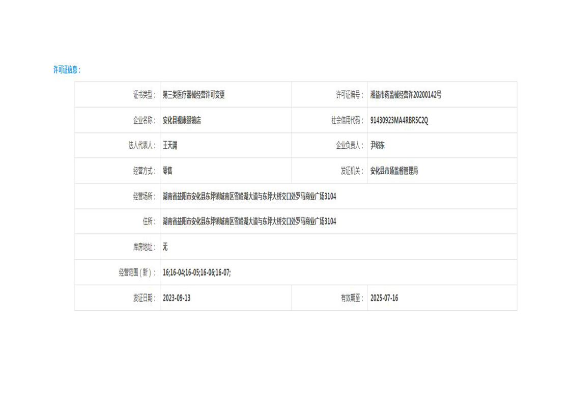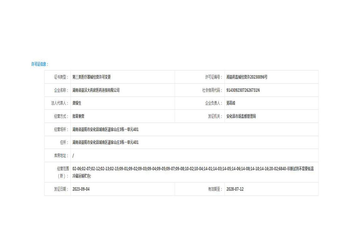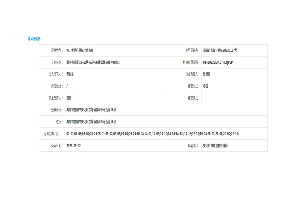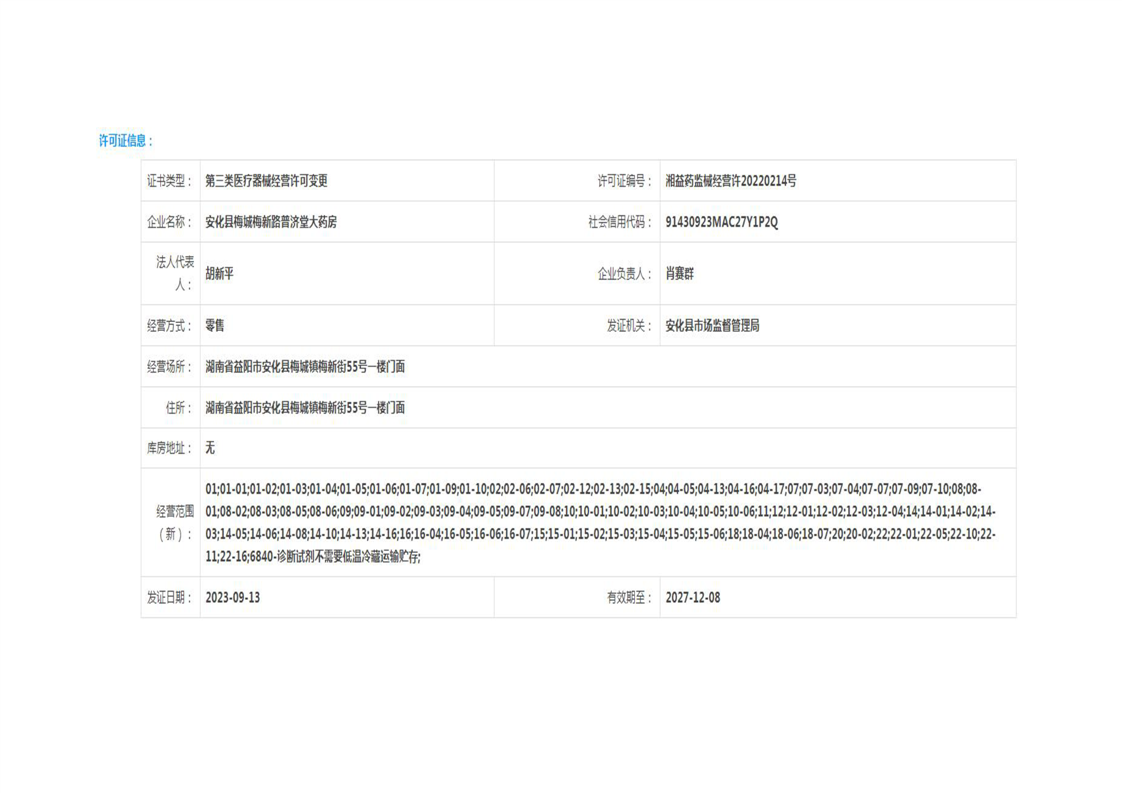 医疗器械经营许可(备案)信息公示 (2023年第07号)