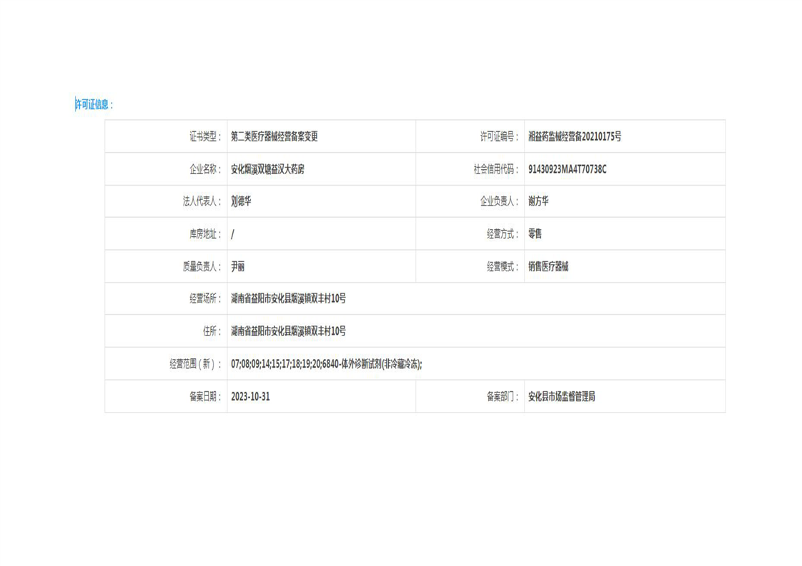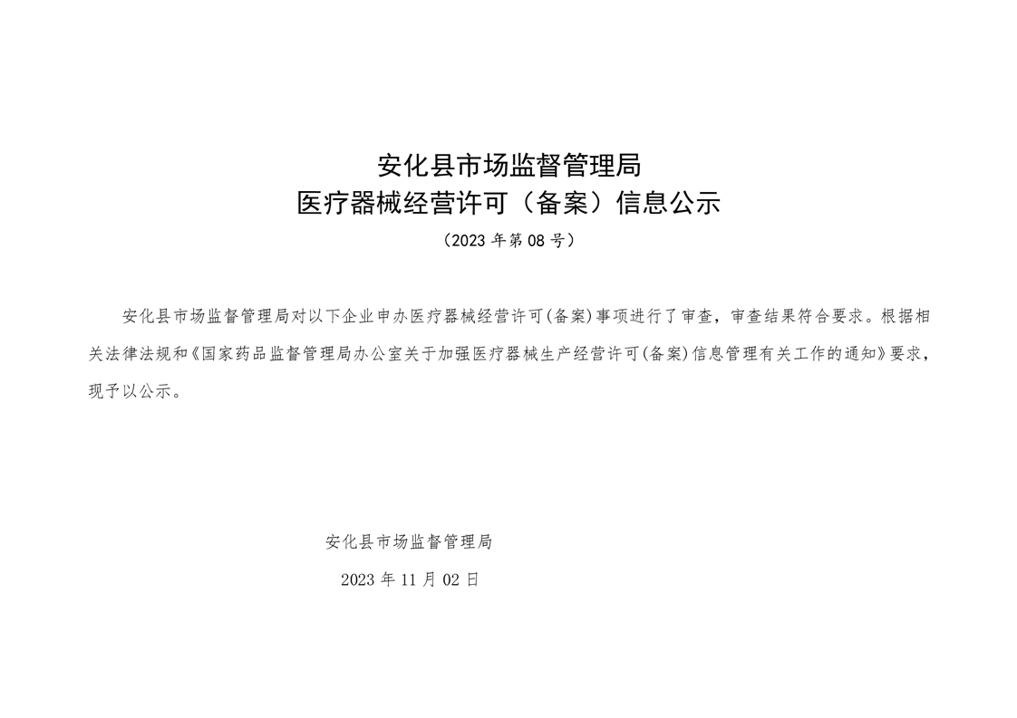 医疗器械经营许可(备案)信息公示 (2023年第08号)