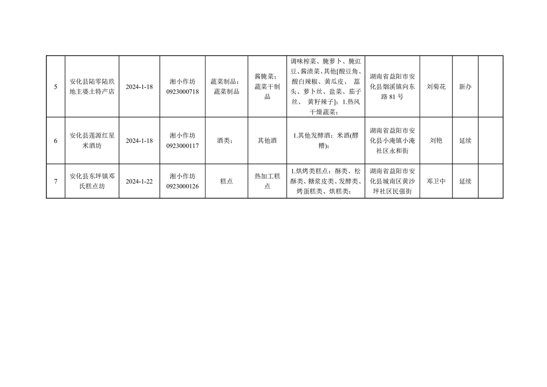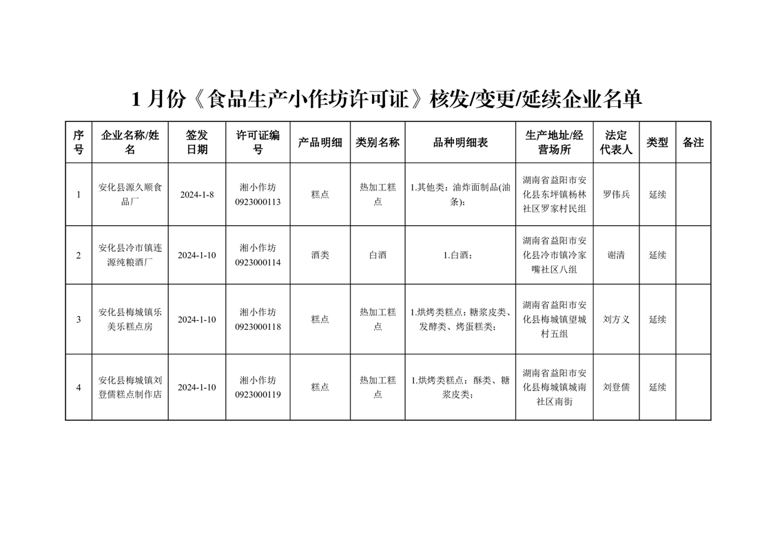 安化县市场监督管理局2024年第1期《食品生产小作坊许可证》 核发/变更/延续公告