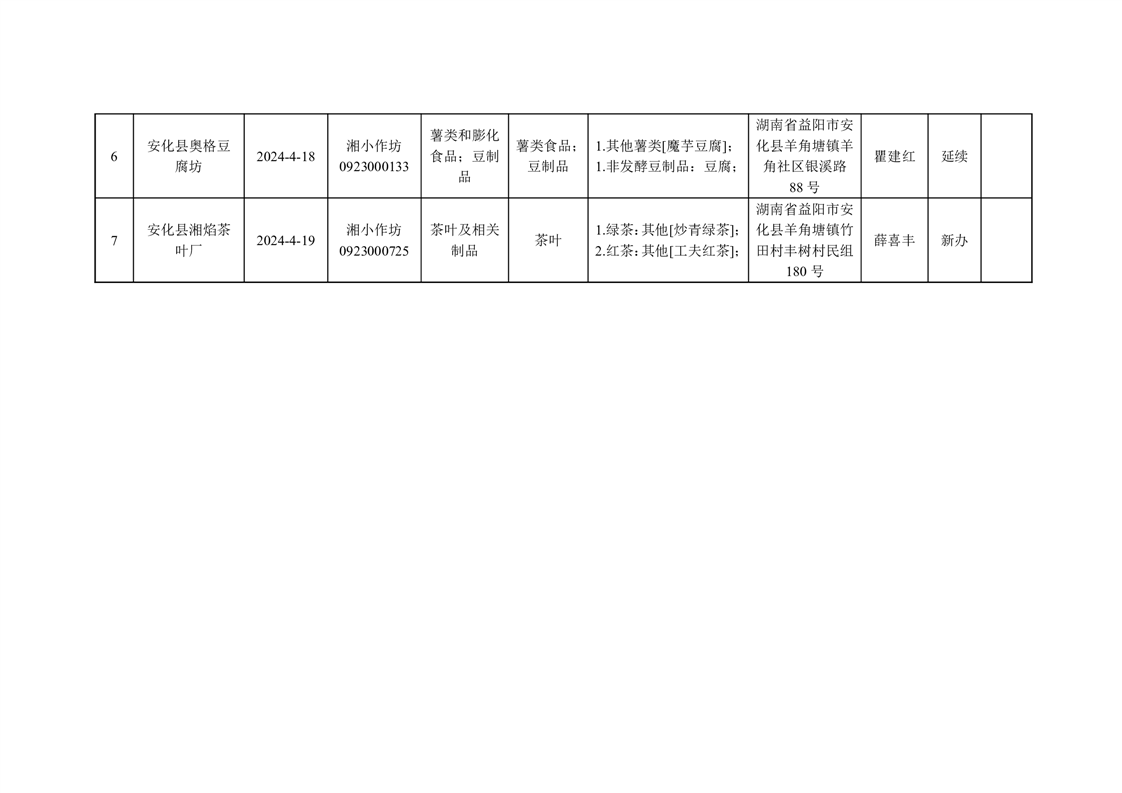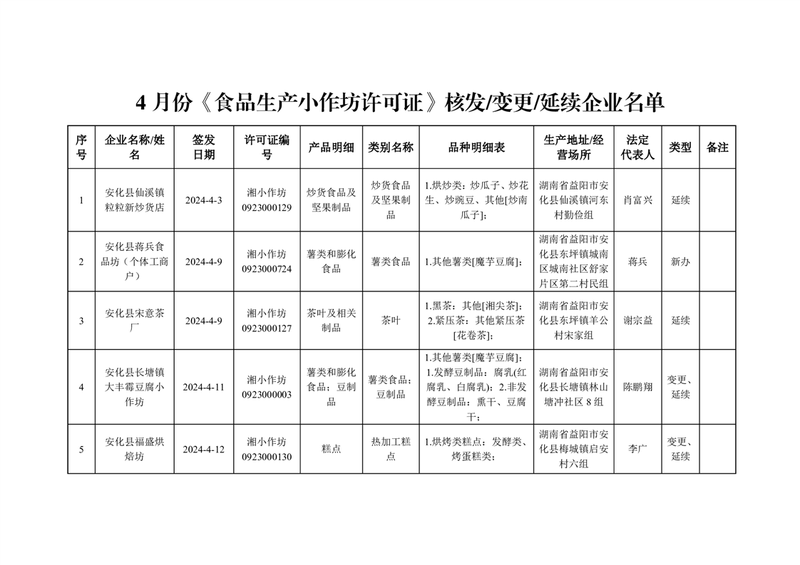 安化县市场监督管理局2024年第4期《食品生产小作坊许可证》核发/变更/延续公告