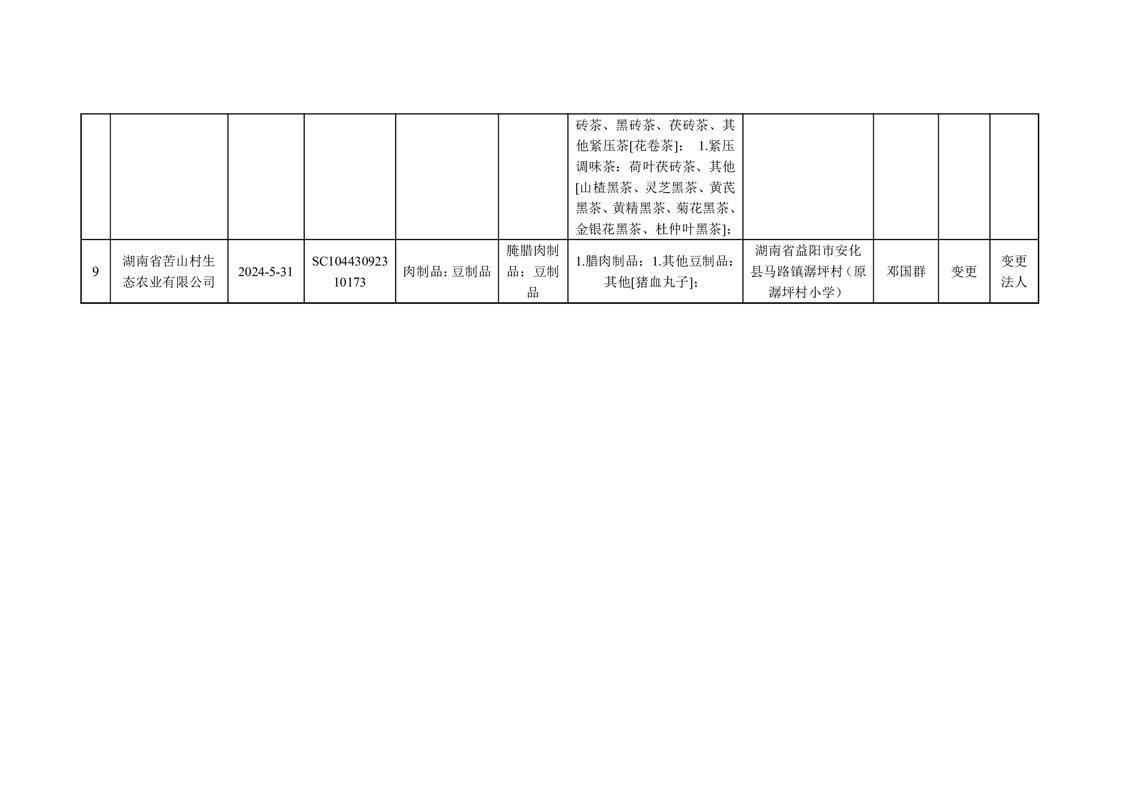 安化县市场监督管理局2024年第5期《食品生产许可证》核发/变更/延续公告