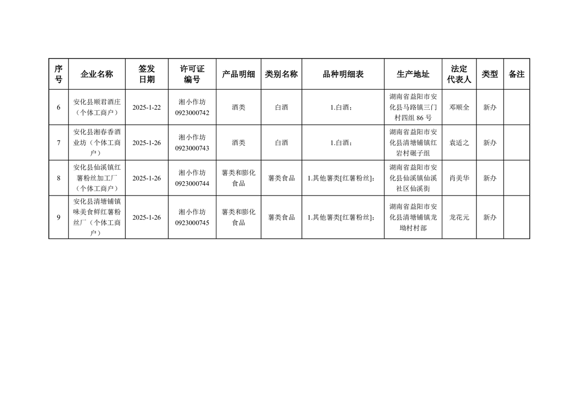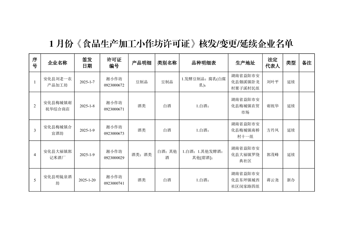 安化县市场监督管理局 2025年第1期《食品生产加工小作坊许可证》核发/变更/延续公告