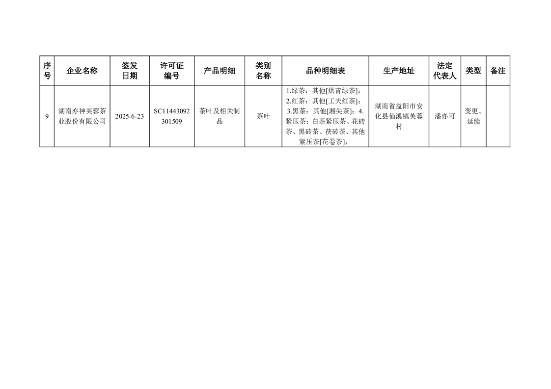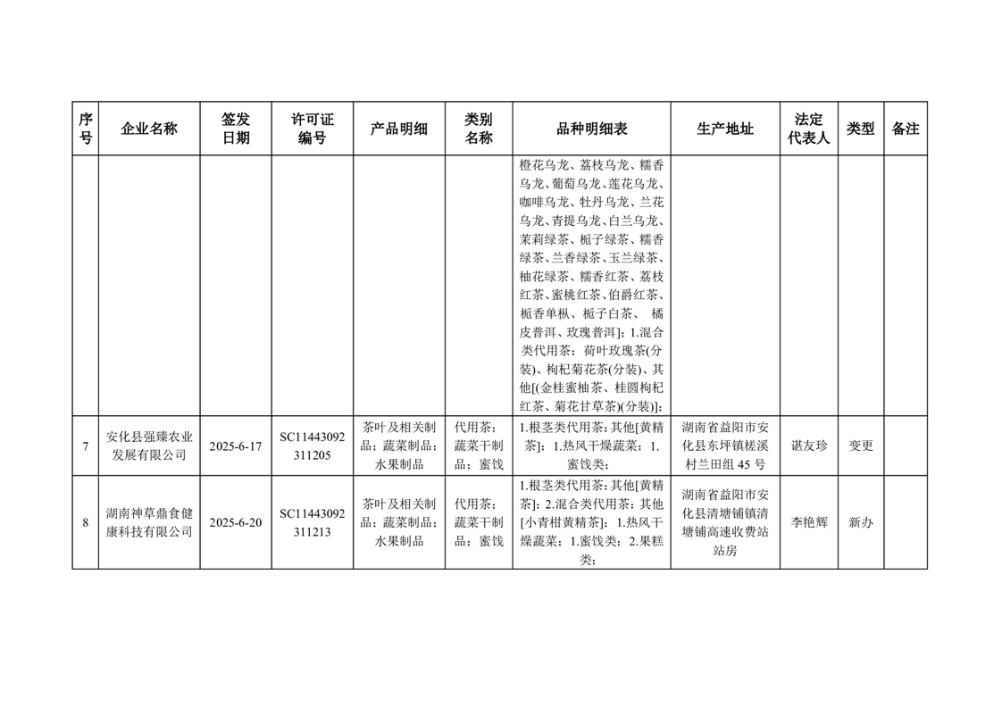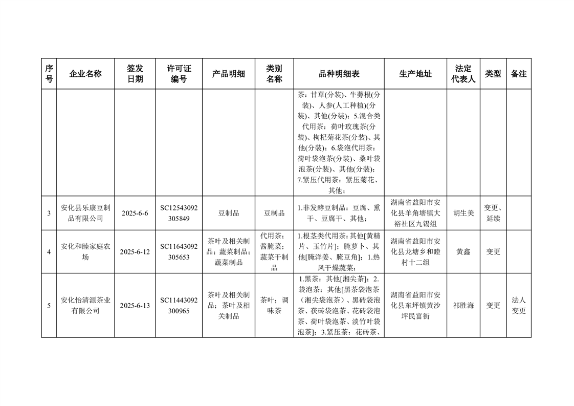 安化县市场监督管理局 2025年第6期《食品生产许可证》核发/变更/延续公告