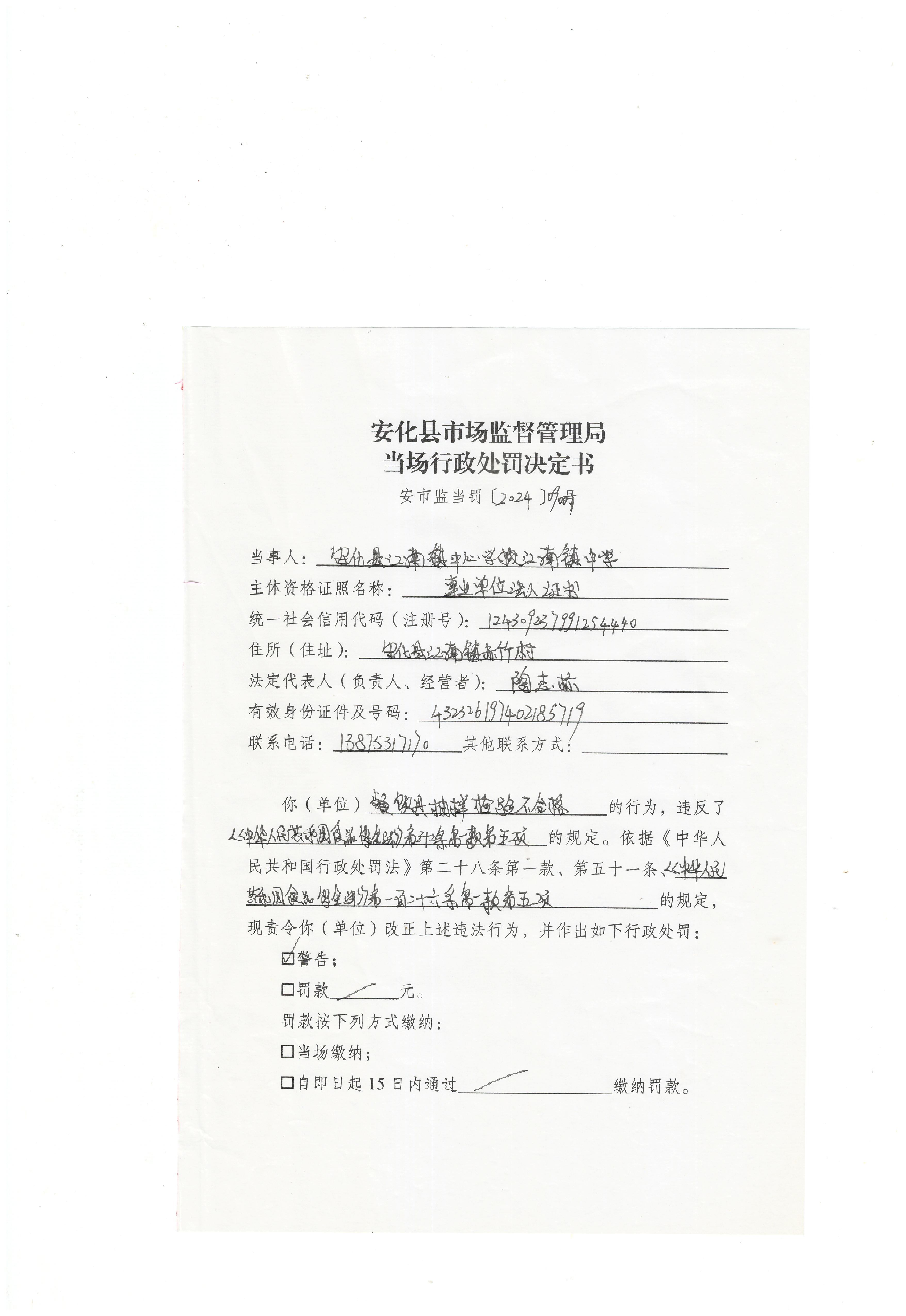 安市监当罚【2024】09001号