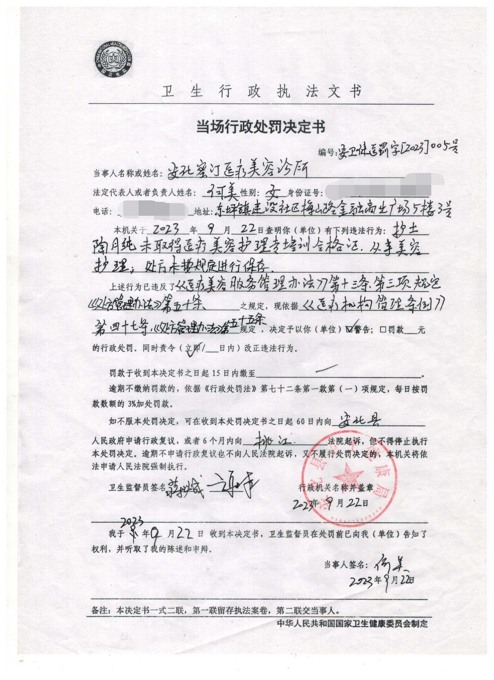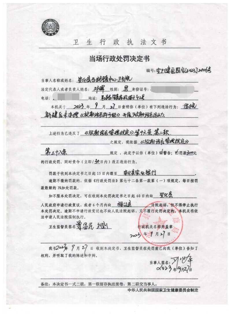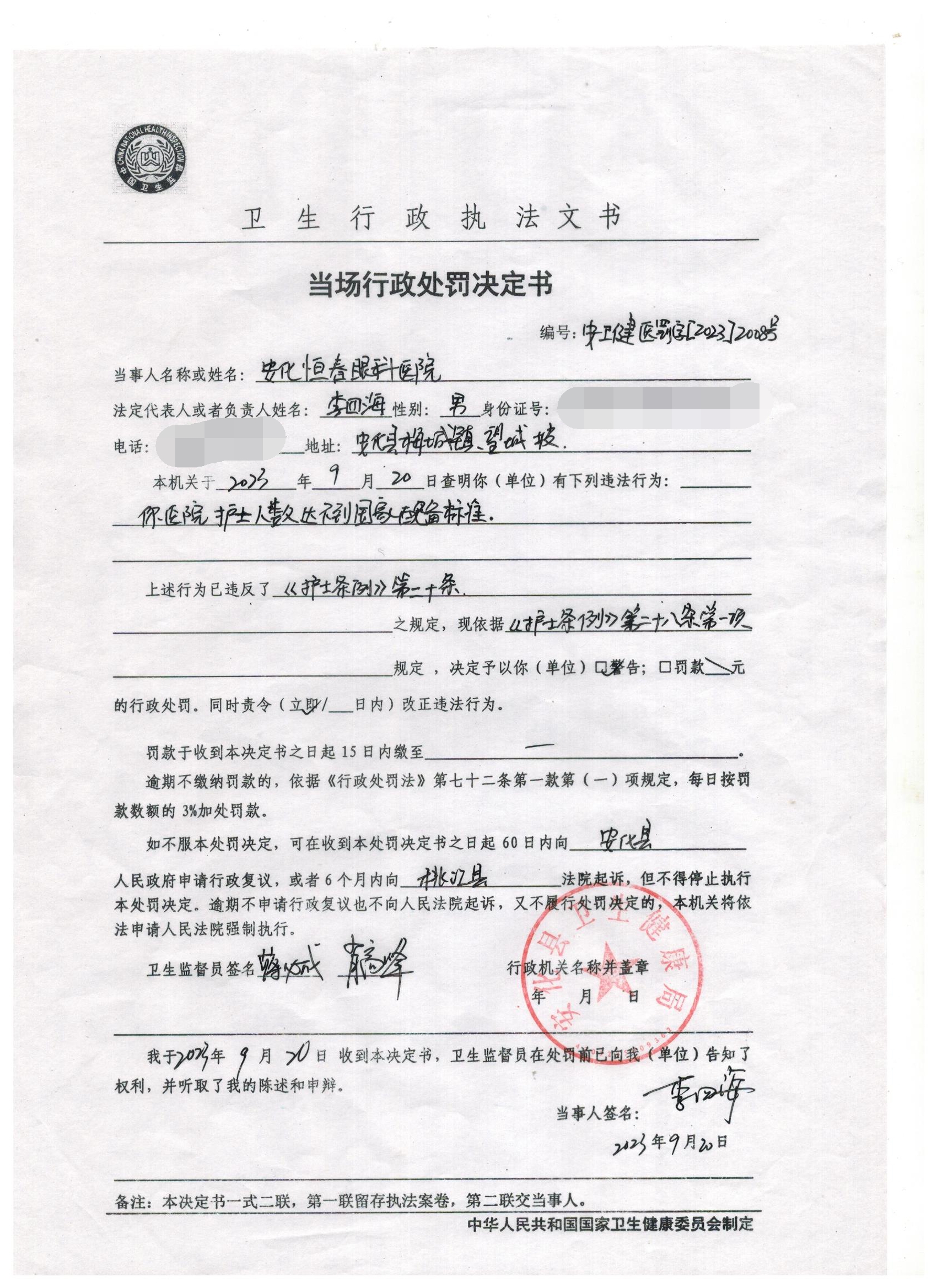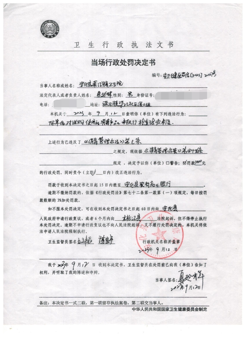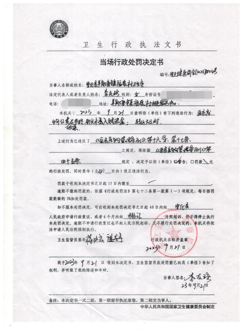 县卫健执法局2023年9月行政执法公示(第二批)