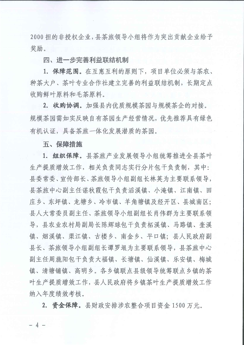 安化县茶旅产业发展领导小组 关于印发《关于推进2021年茶叶生产提质增效的实施意见》的通知