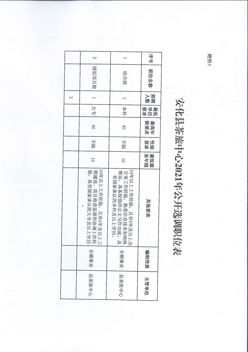 安化县茶旅产业发展服务中心公开选调事业单位工作人员公告