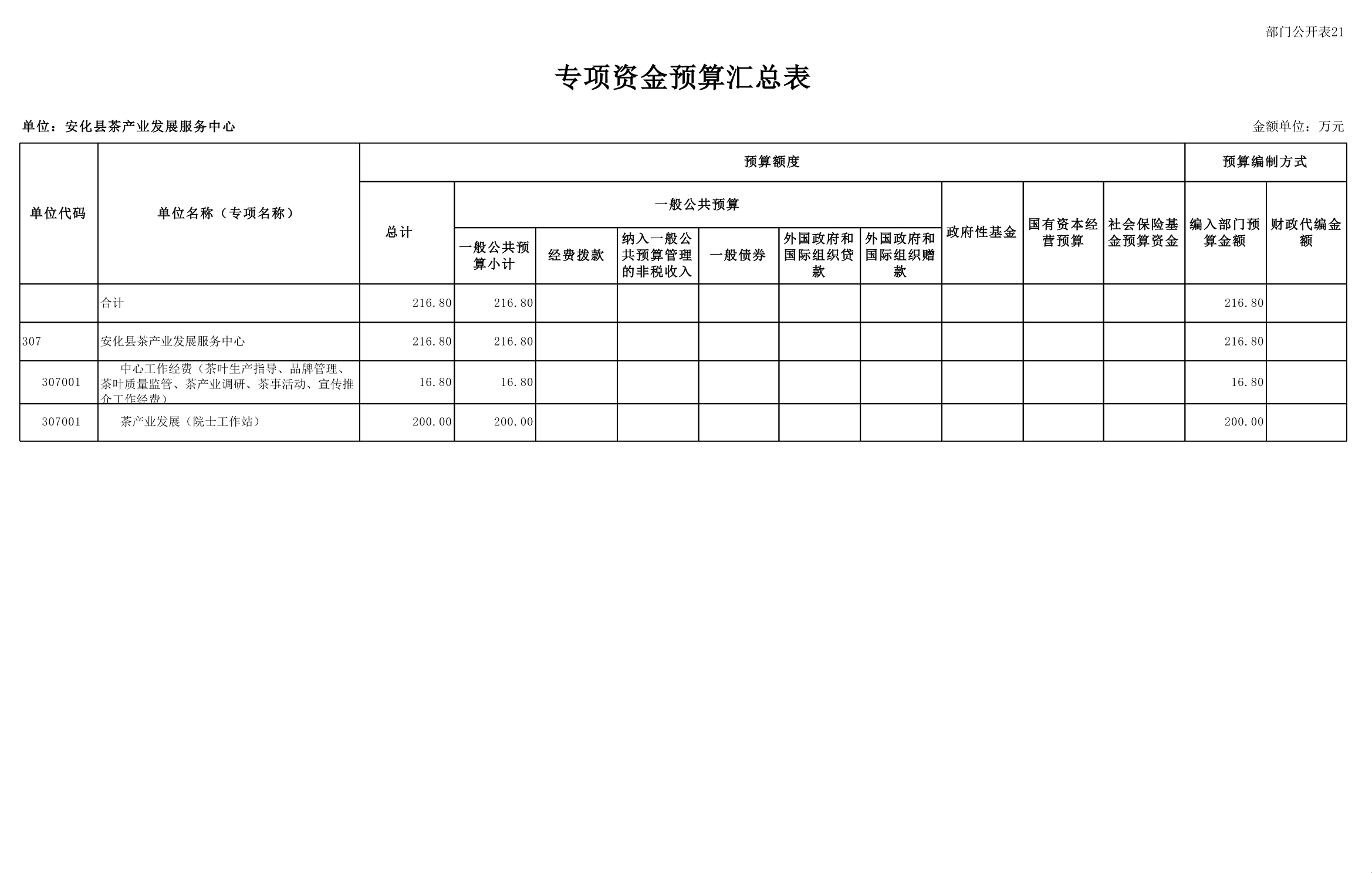 2026年安化县茶产业发展服务中心部门预算公开