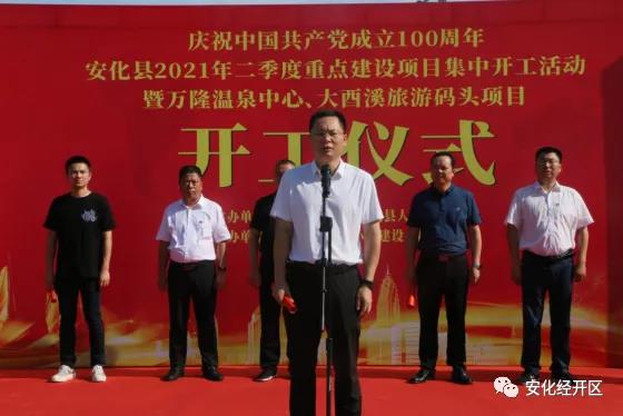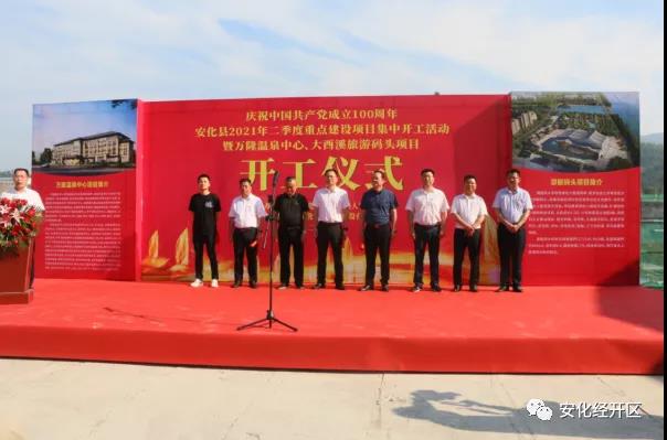 此次集中开工项目共计3个,分别为安化黑茶特色小镇万隆温泉中心、大酉溪旅游码头及安化经开区循环经济创新科研基地一期(国家现代农业产业园标准化厂房建设项目)。