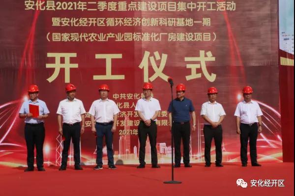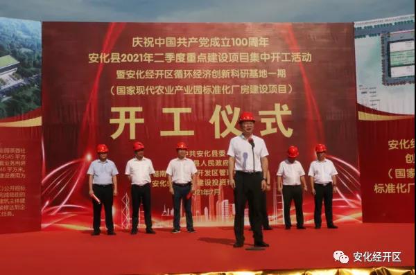 副县长郭环球在致辞中指出,近年来,县委、县政府充分发挥资源优势,做好生态与科技两篇文章,安化获评中国“十三五”茶产业发展十强县,连续十二年入选中国茶叶百强县前十强,“安化黄精”获2块国字号招牌,安化荣获“中国多花黄精之乡”称号,“安化厚朴”成功注册国家地理标志证明商标。今天开工的循环经济创新科研基地,对进一步提高我县产业科技含量、促进产业升级、做大循环经济总量具有十分重要的意义,各有关单位要牢固树立“项目为王”理念,共同推动项目如期建成投产。