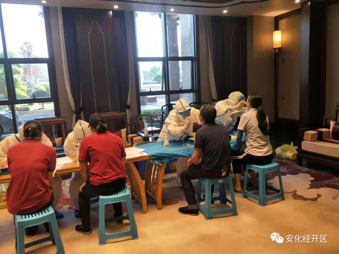 “太快了,整个过程就几分钟,不用去医院排队人挤人,为我们企业职工解决了后顾之忧。”安化经开区某企业员工说道。在空旷的企业活动室中,安化县人民医院的医务人员身穿防护服,手持一次性无菌拭子,提取员工咽喉部的分泌物,为企业员工进行采样。在政府工作人员的有序组织及企业默契配合下,该公司需要核酸检测的470名员工全部顺利完成取样。