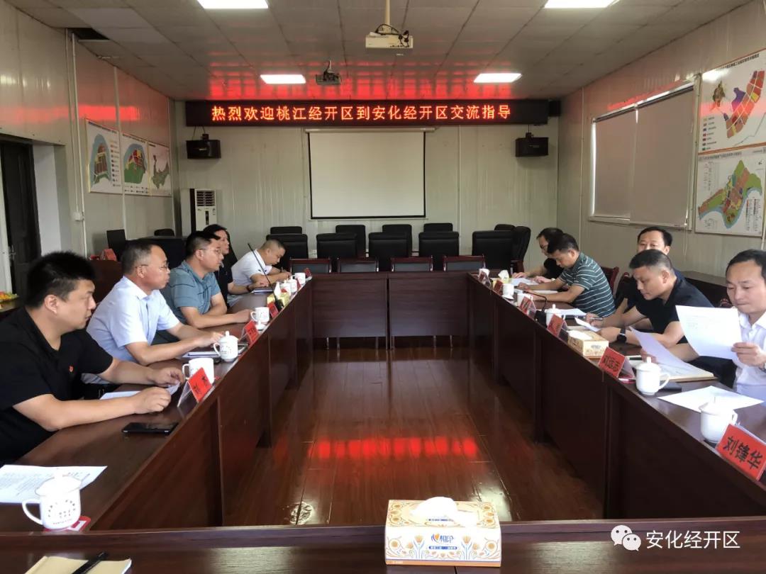8月30日,桃江经开区党工委书记符赛龙率队来安化经开区考察交流。副县长提名人选瞿永红,安化经开区在家班子成员参加座谈,会议由县委常委、县人民政府党组成员、副县长郭环球主持。