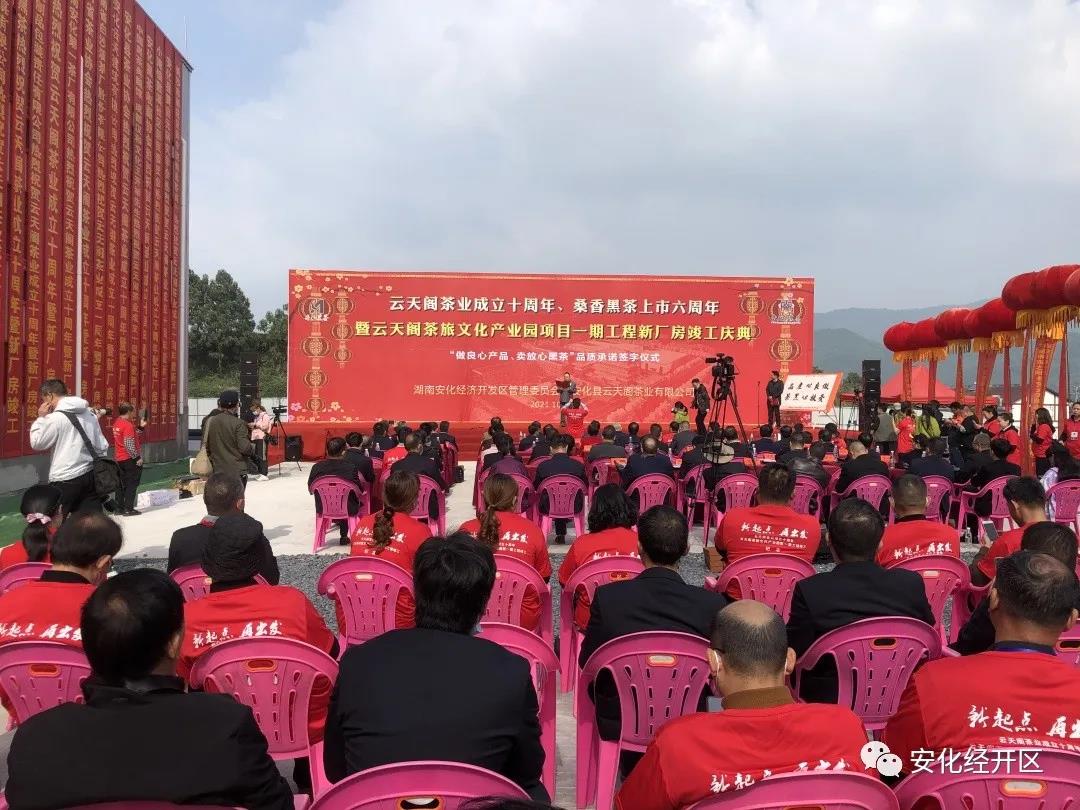 黑茶文化节的举办,也鼓舞着园区广大的建设者,10月23日,云天阁文化产业园项目一期工程如期竣工,安化松针茶旅产业园开工奠基,全区项目建设如火如荼,态势良好。