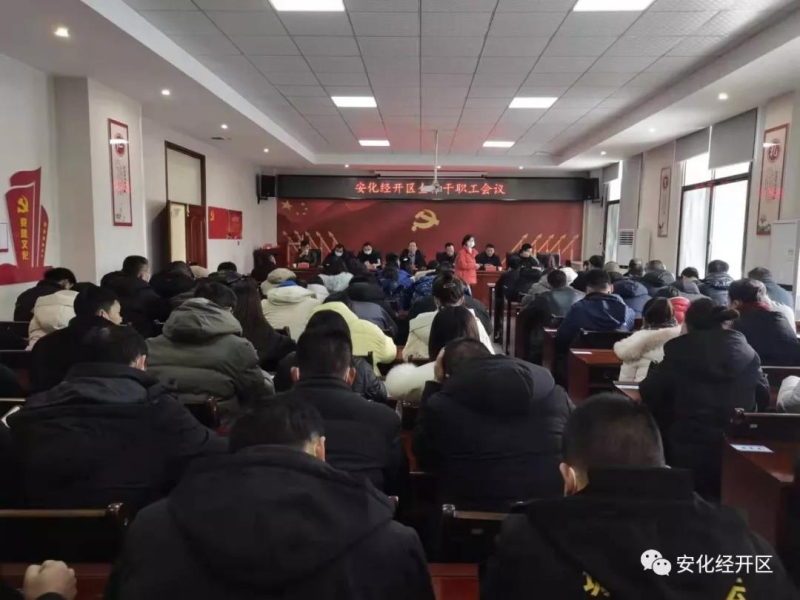 10时,在恒峰印务会议室,安化经开区党工委副书记王定岩主持召开全体干职工大会。会议围绕省委省政府“三高四新”和县委县政府“一四五”战略,对标“五好”园区创建和推动经济高质量发展要求,就2022年工作进行了部署安排。经开区管委会主任胡盛云指出,要落实“主动服务做好企业的复工复产、主动对接搞好招商引资、主动攻坚做好征收拆迁、主动作为做好疫情防控、主动担当做好信访维稳、主动筹备做好经济工作会议准备、主动解读做好新举措的落地和园区开展‘三大竞赛’、主动创新做好融资归集、主动谋划做好乡村振兴”等9个“主动”性工作,向干职工提出要践实服务企业的孺子牛、实干担当的拓荒牛、艰苦奋斗的老黄牛的“三牛”精神,争当信念坚定的忠诚虎、为民服务的实干虎、清正廉洁的清风虎。