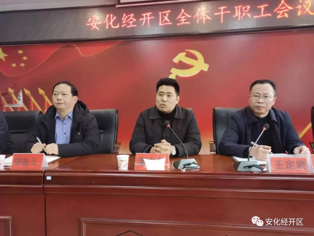 会上,安化县委副书记、统战部部长潘文剑向安化经开区全体干职工表示新年的慰问,对干职工2021年的工作表示肯定,并对2022年园区工作提出殷切期望。他强调,要锚定大局、汇聚力量、服务企业,实现园区税收大提升;要破除桎梏、打破壁垒、优化环境,“五好”园区创建上台阶。胡盛云也表示,安化经开区将共同努力、不负县委县政府期盼与要求,以“五好”园区为抓手,展现园区新形象。