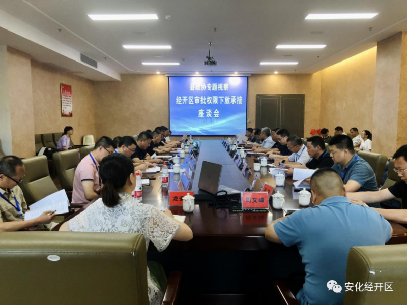 随后,在专题视察协商座谈会上,安化县行政审批服务局、经开区负责人对审批权限下放、承接情况进行了详细汇报,政协委员代表、县住建局、人社局、市监局等单位立足职能职责,分别交流了审批权限下放承接情况、实际运行中存在的问题、难点和下一步工作打算、意见建议等内容。