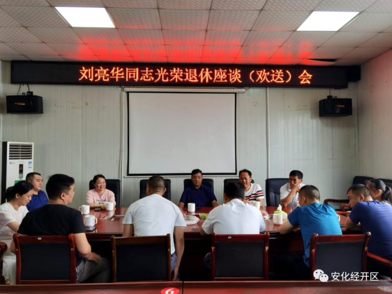 为充分体现对到龄干部的关心关爱,进一步增强园区干部的荣誉感和归属感,7月8日上午,安化经开区为首位到龄干部刘亮华举办退休座谈(欢送)会。座谈会上,刘亮华发表了退休感言,简要回顾了自己四十多年的工作经历,特别是分享了他作为园区建设者的一员,亲历园区从开垦拓荒到如今的欣欣向荣所感受到的骄傲和满足,并表达了自己对朝夕相处的同事和奋斗多年的工作岗位的依依惜别之情。参与座谈人员纷纷畅谈与退休同志在工作中的点点滴滴,对其在工作岗位上的兢兢业业、默默奉献表达了敬意和感谢,并对退休后的生活送上祝福。