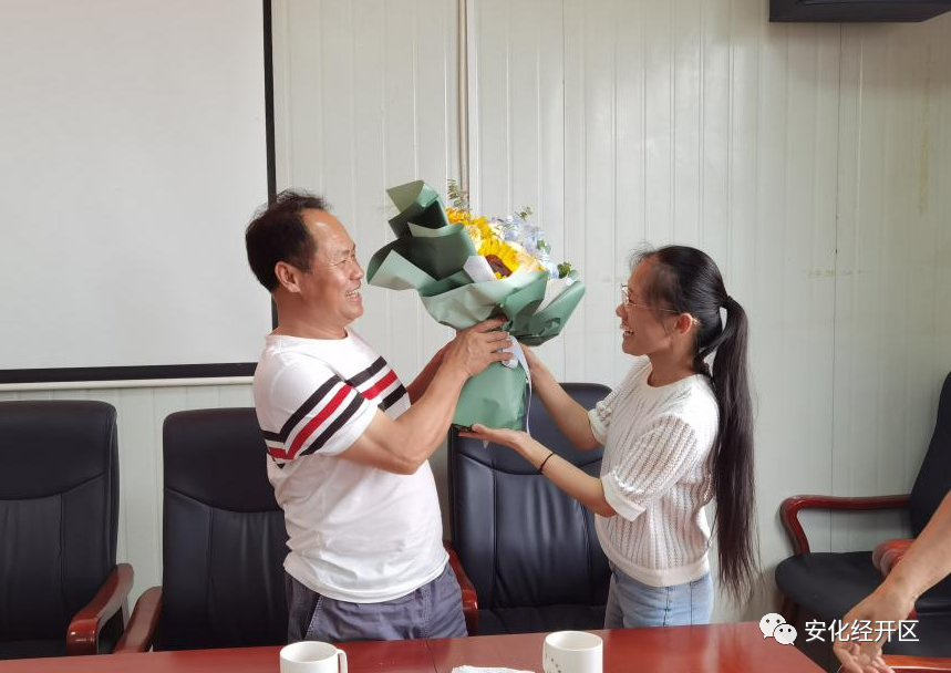 安化经开区班子领导、工会领导为退休干部送上了最诚挚的祝福和寄语,希望其在享受退休新生活的同时,继续关注和支持园区的建设和发展。最后,工会向刘亮华送上光荣退休纪念品,团委年轻干部献上鲜花,为经开区首个光荣退休仪式画上了圆满句号。