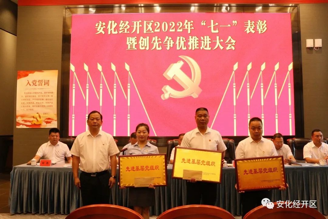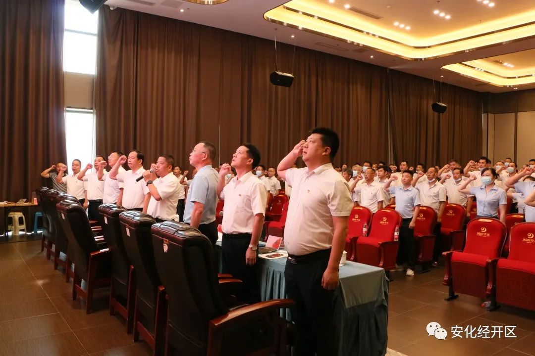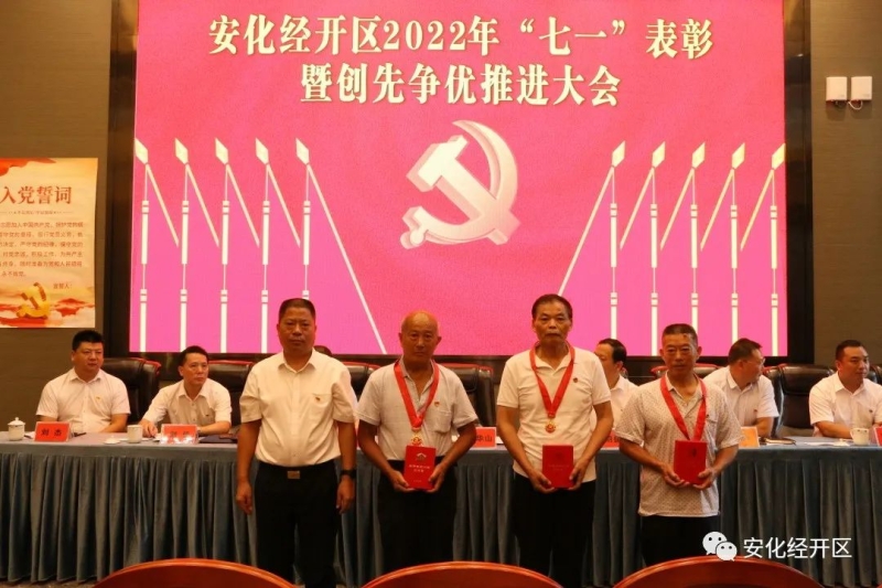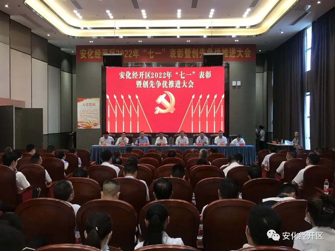 7月1日,安化经开区召开2022年“七一”表彰暨创先争优推进大会。会议由区党工委副书记王定岩主持。机关全体干职工、县经投公司全体员工、两新党组织负责人、茶酉社区全体干部、茶酉社区在党50年党员代表、受表彰的单位和个人参加会议。