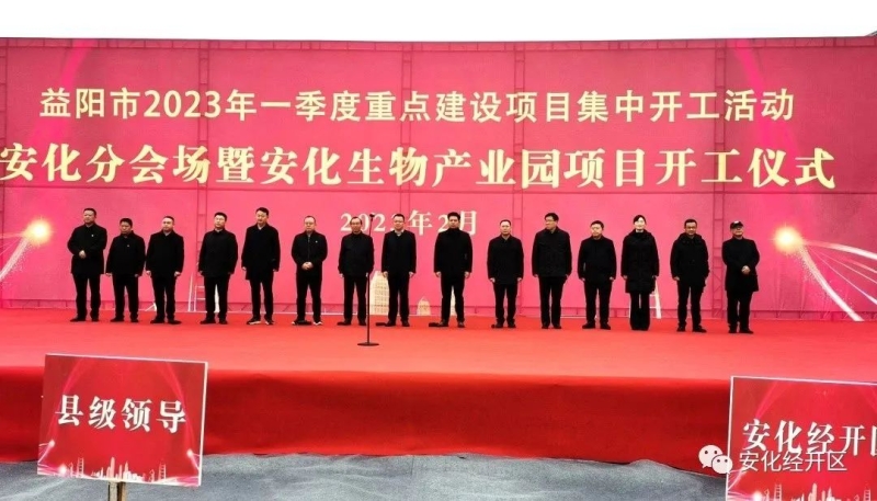 人勤春来早,实干正当时。2月4日,安化县举行2023年一季度重点项目集中开工活动暨安化生物产业园项目开工仪式。6个项目集中开工,总投资43.4亿元。安化县委书记石录明现场宣布安化县一季度重点建设项目开工,县委副书记、县长潘文剑出席仪式并致辞,县委副书记、统战部部长李丰主持开工仪式。